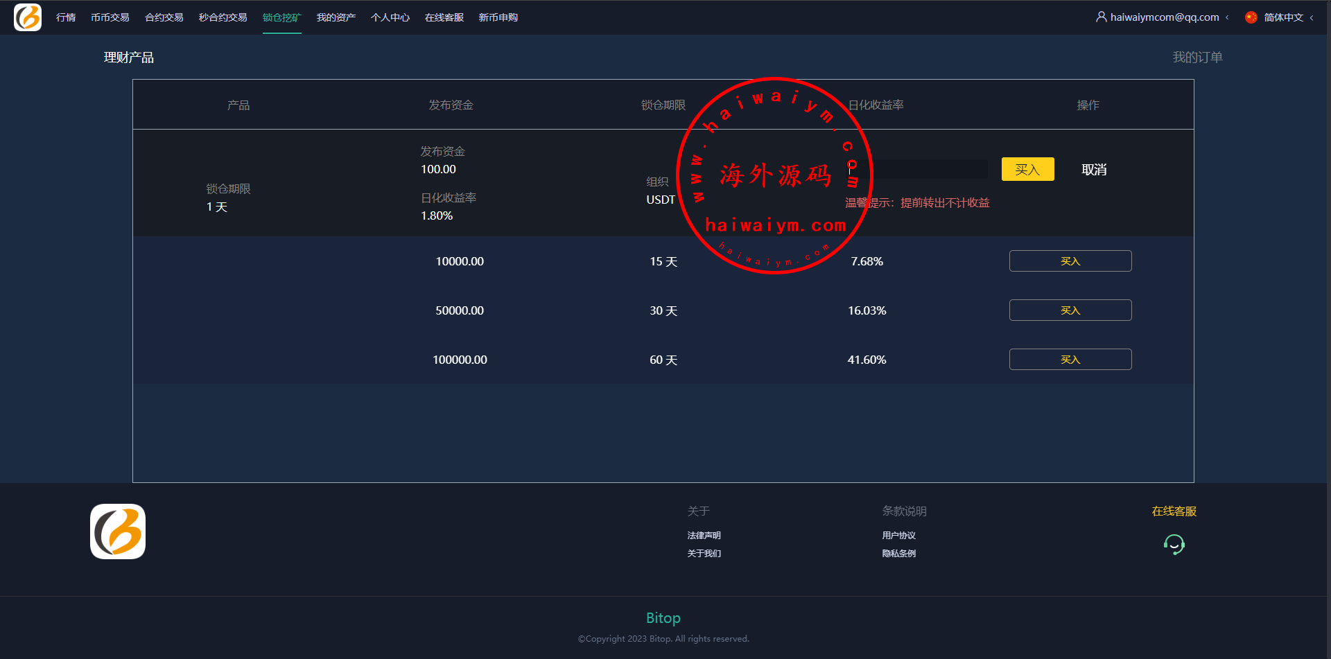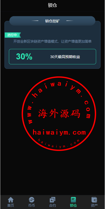 系统功能支持:秒合约、合约、锁仓挖矿、新币认购功能,无平台币