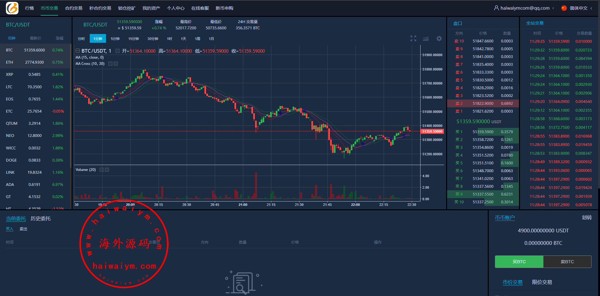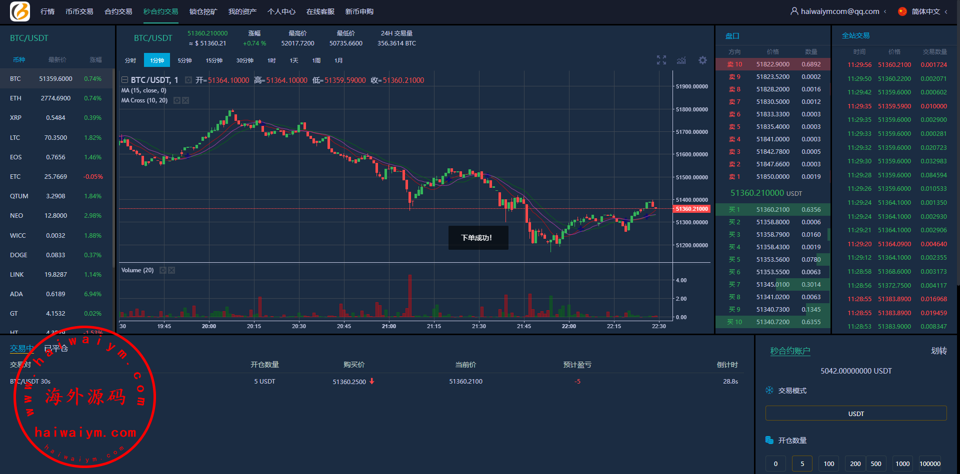 多语言虚拟币交易系统/秒合约交易/伪交易所/时间盘