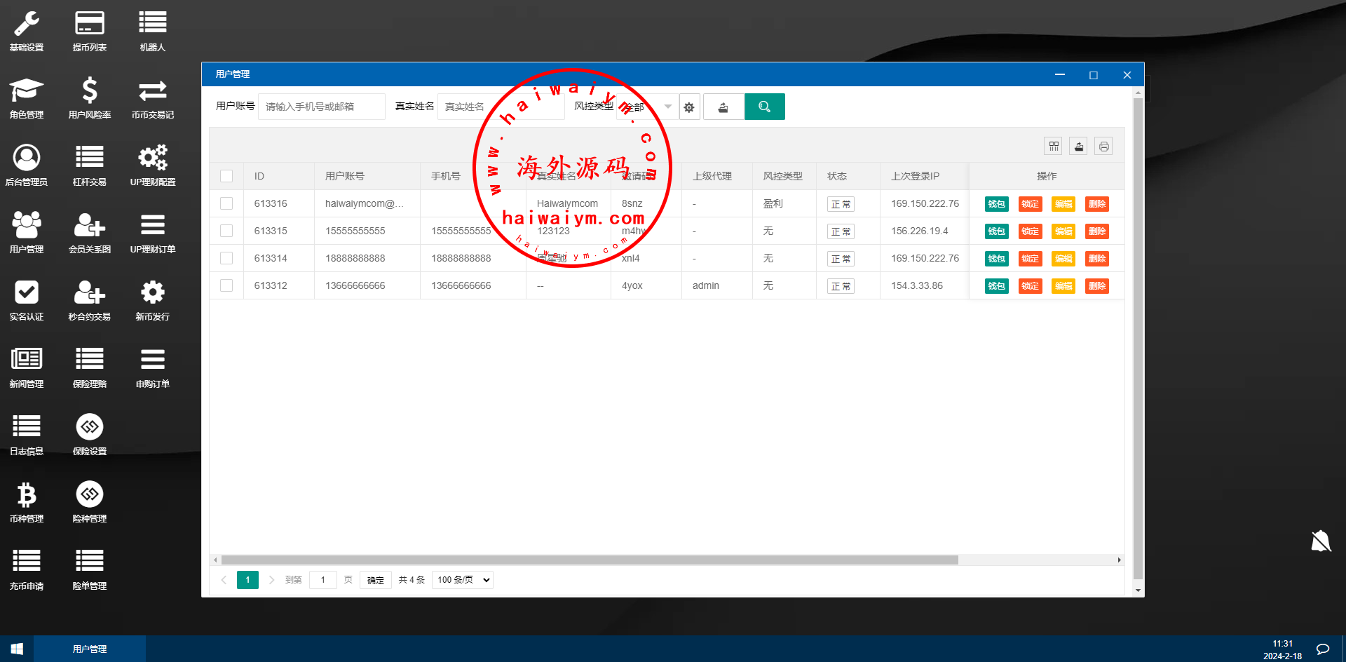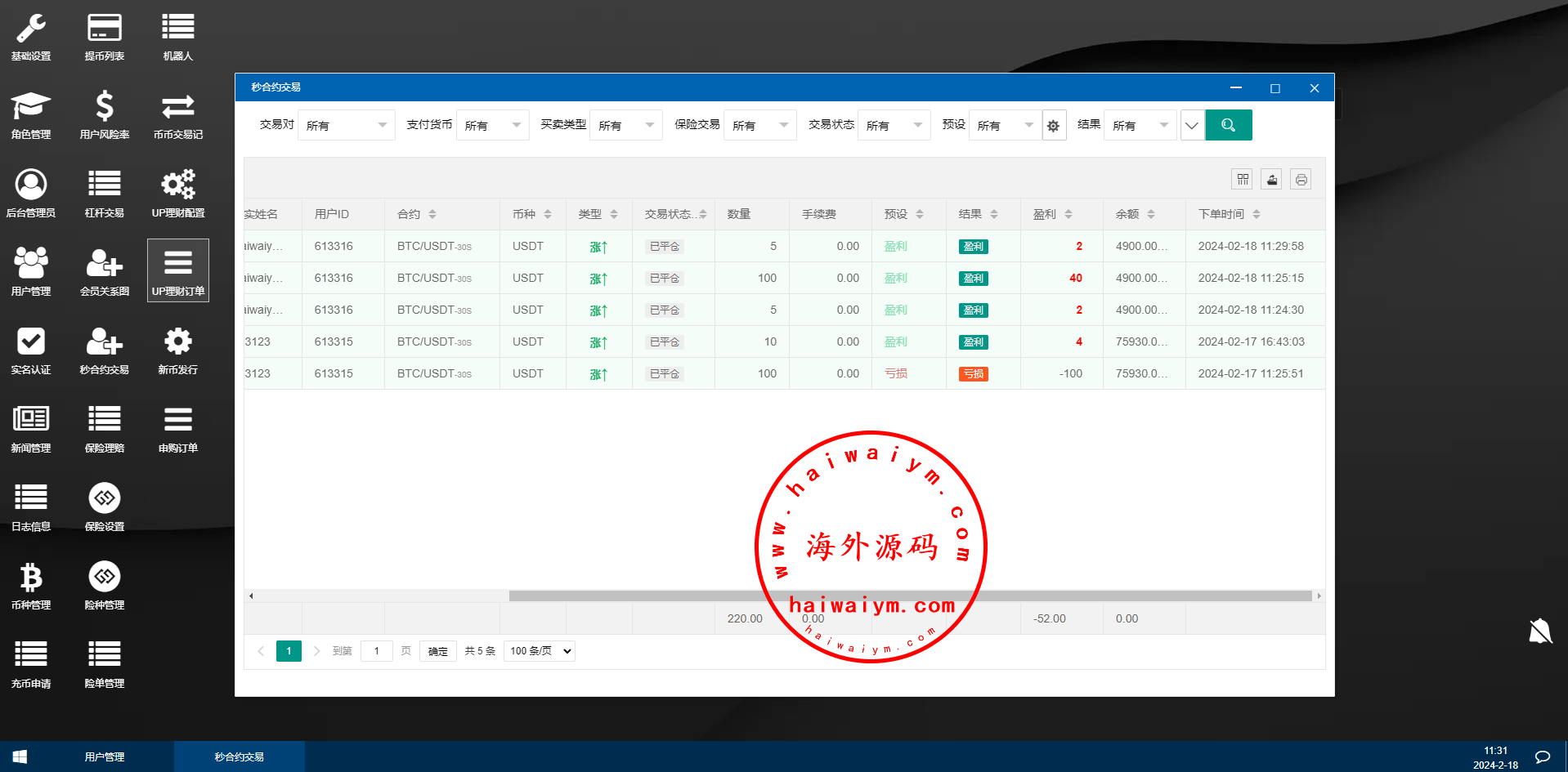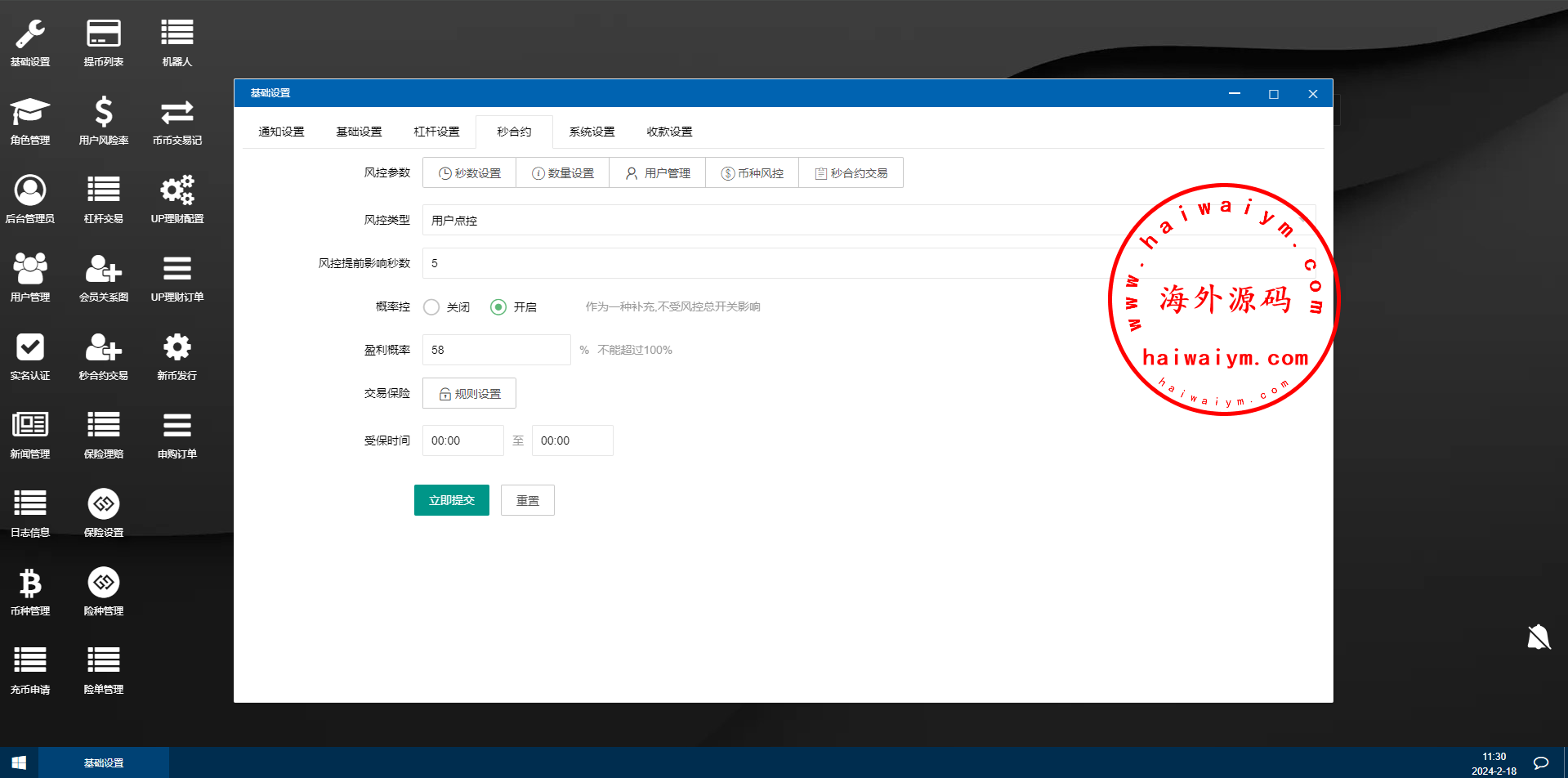 海外交易所系统/合约/期权/质押/秒合约/插针控制/申购