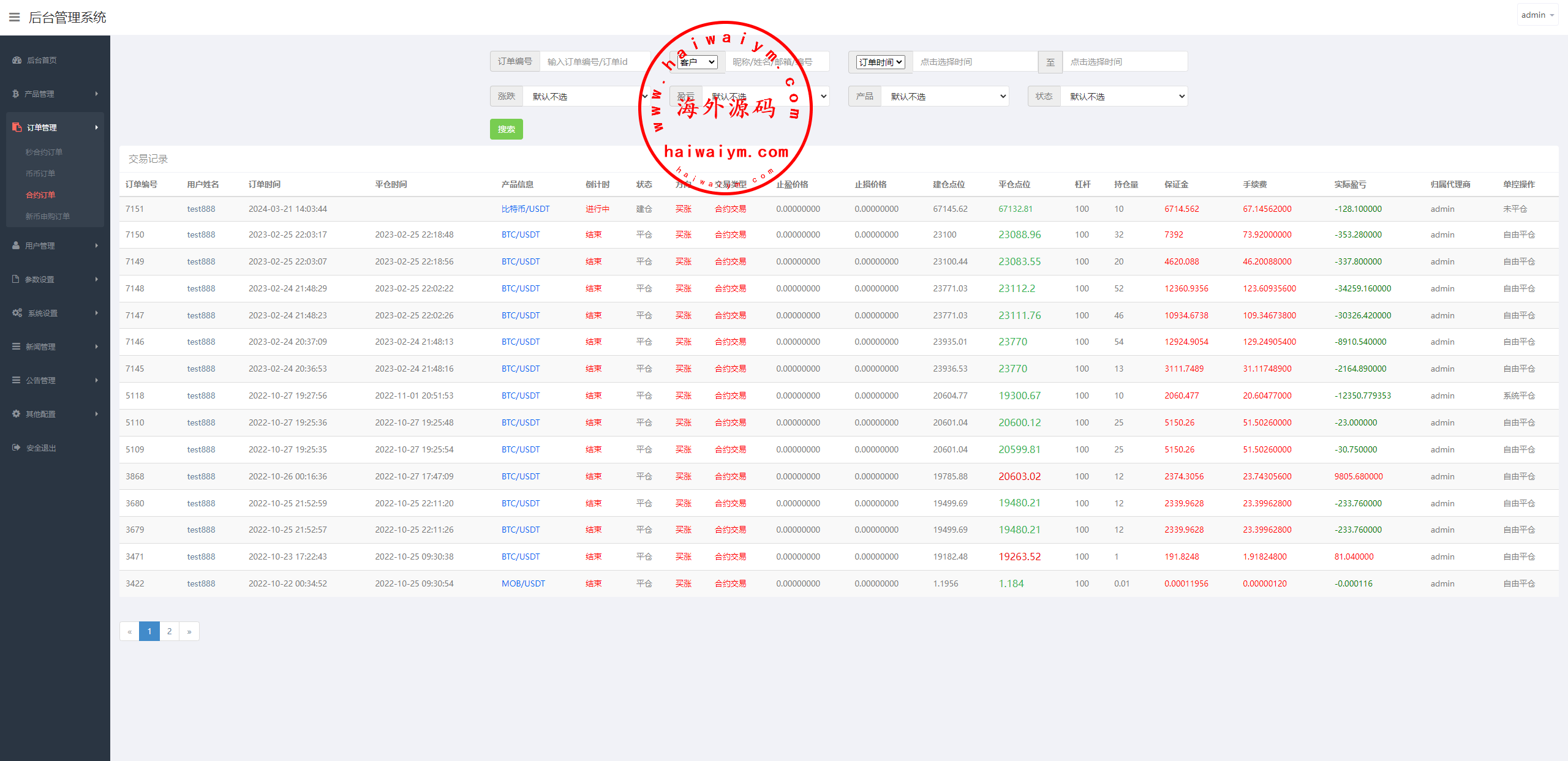 系统支持币币交易、合约交易、期权交易、投资理财、在线客服、新币申购等功能