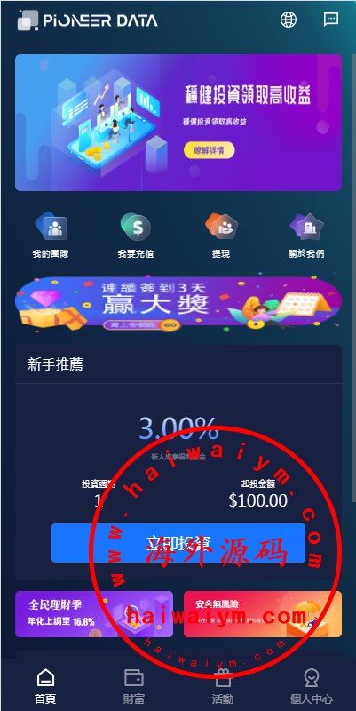 新版海外投资理财系统/多语言投资返利/IM社区/10级分销