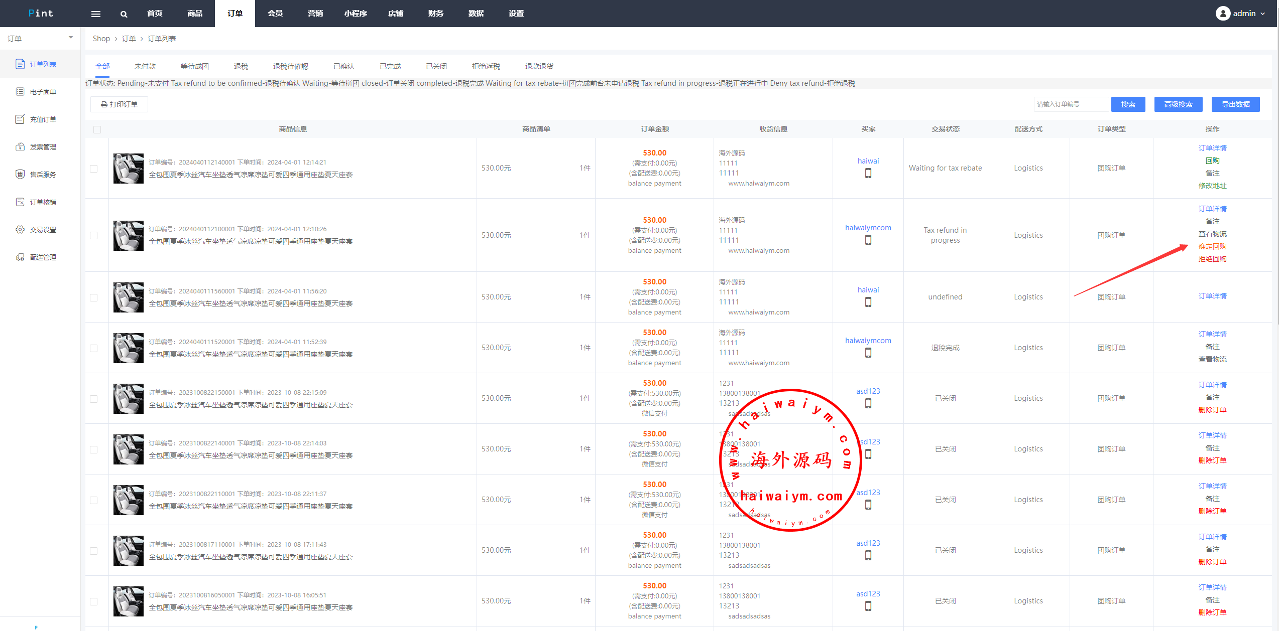 多语言商城回收系统/订单自定义价格回收/海外商城订单回收