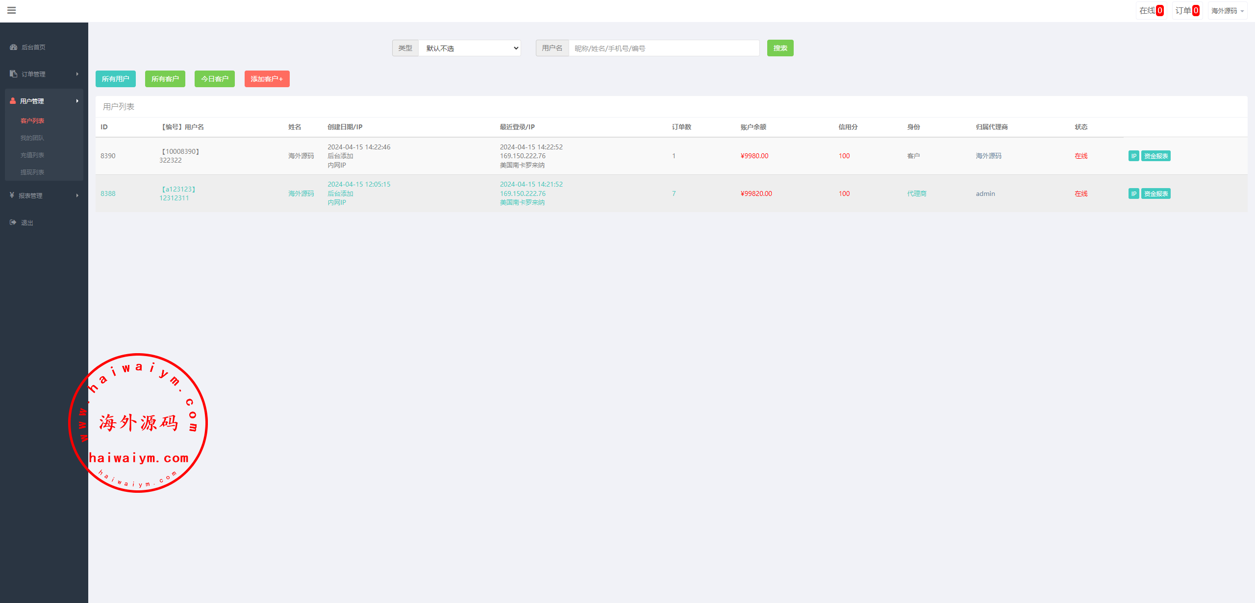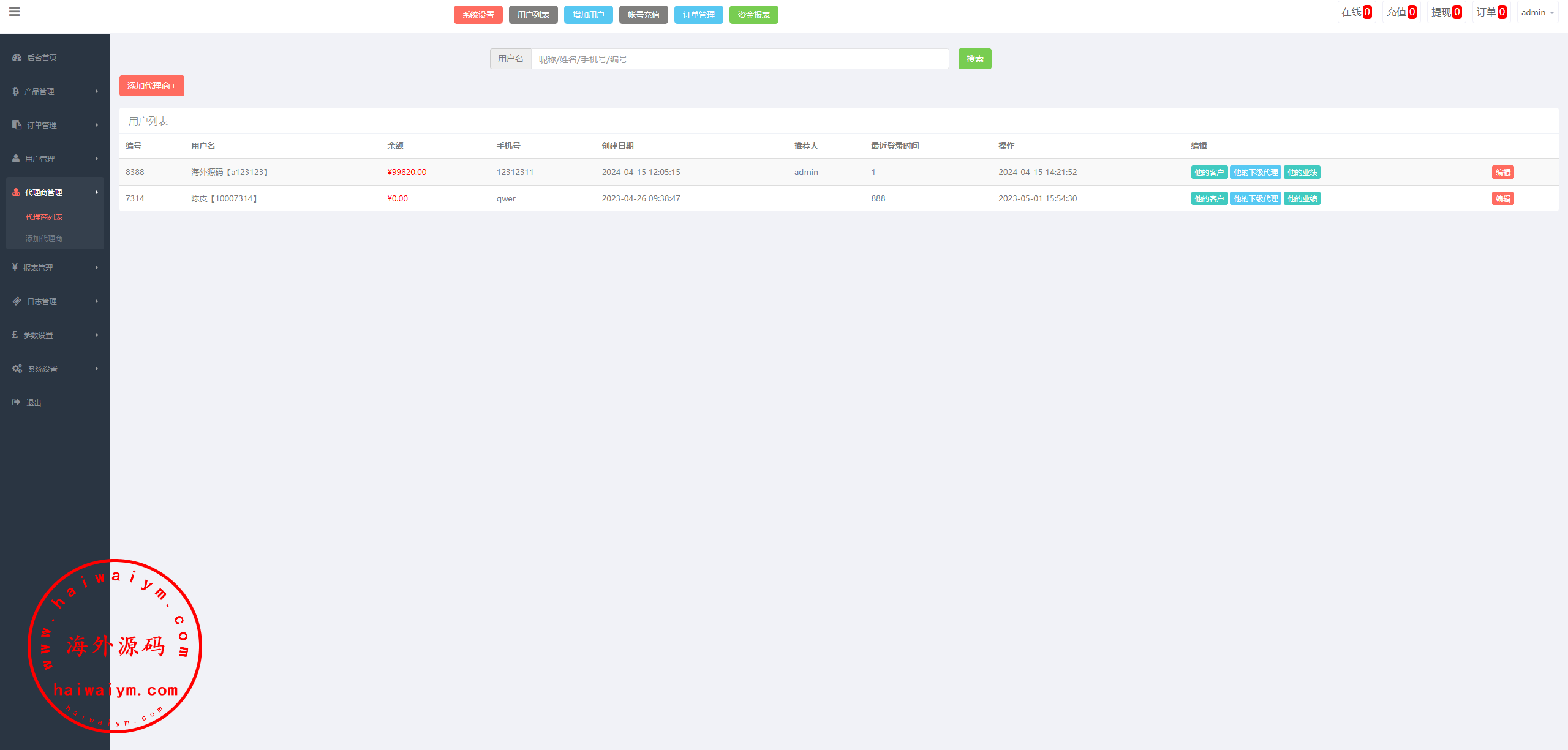 此套有单独代理后台,后台可新增代理商