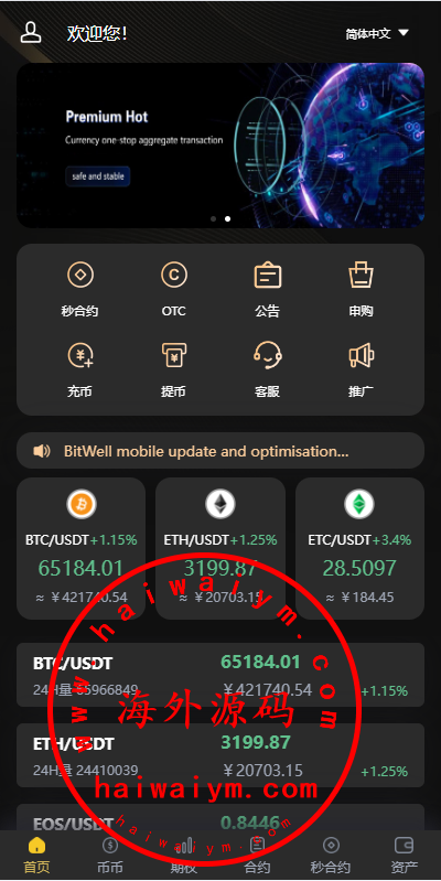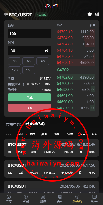 海外多语言交易所/合约/期权/秒合约/插针控制/申购