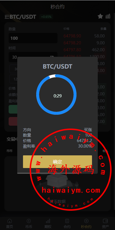 多语言虚拟币微盘/海外微交易/秒合约/时间盘
