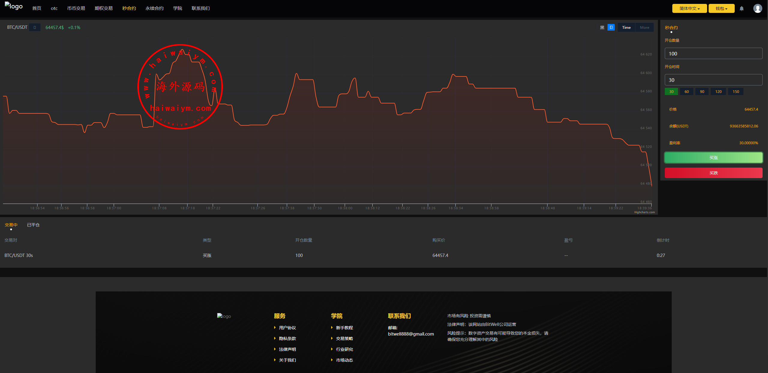 多语言虚拟币交易系统/秒合约交易/伪交易所/时间盘