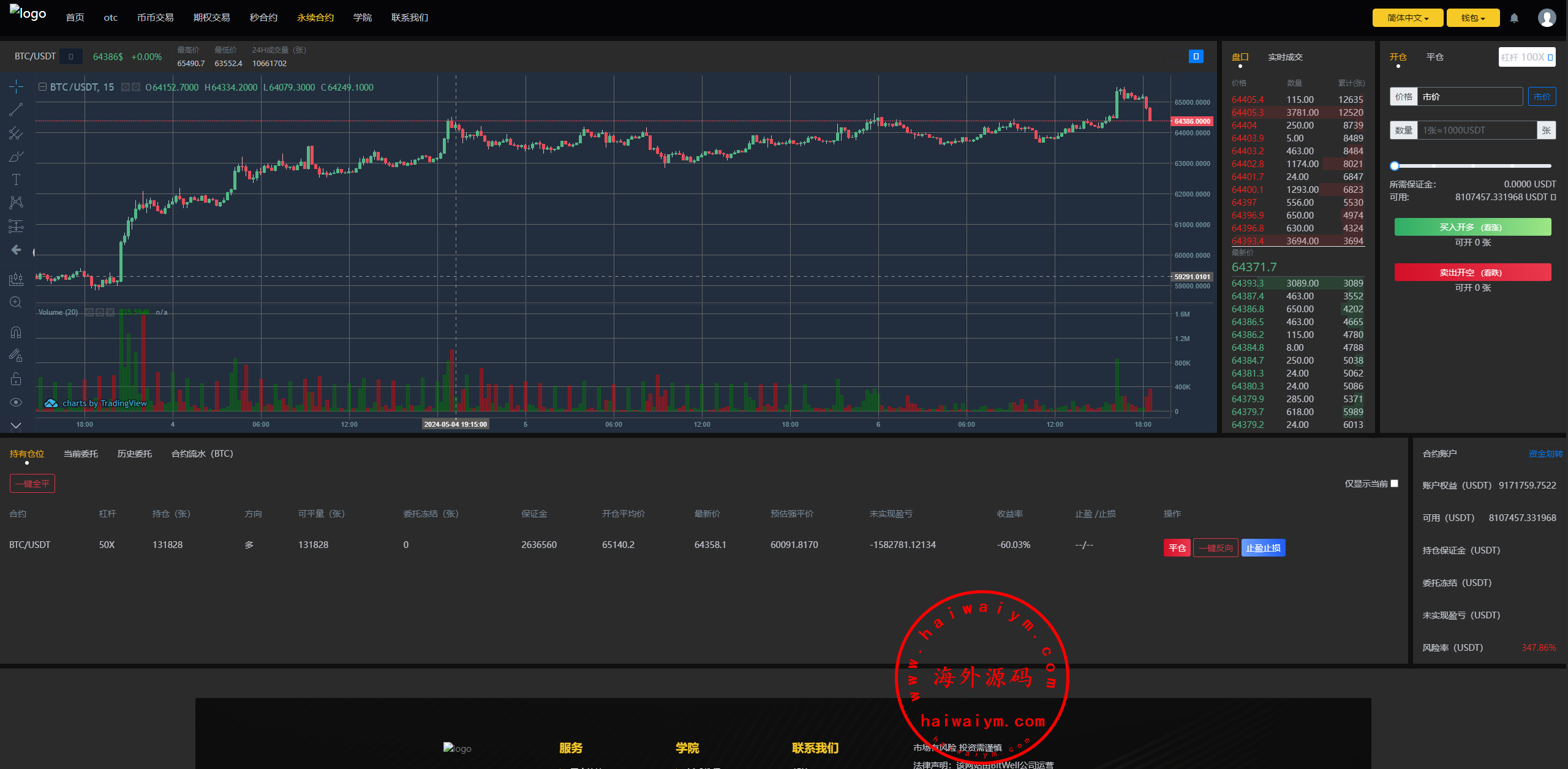 海外交易所系统/永续合约交割合约/K线控制/质押理财