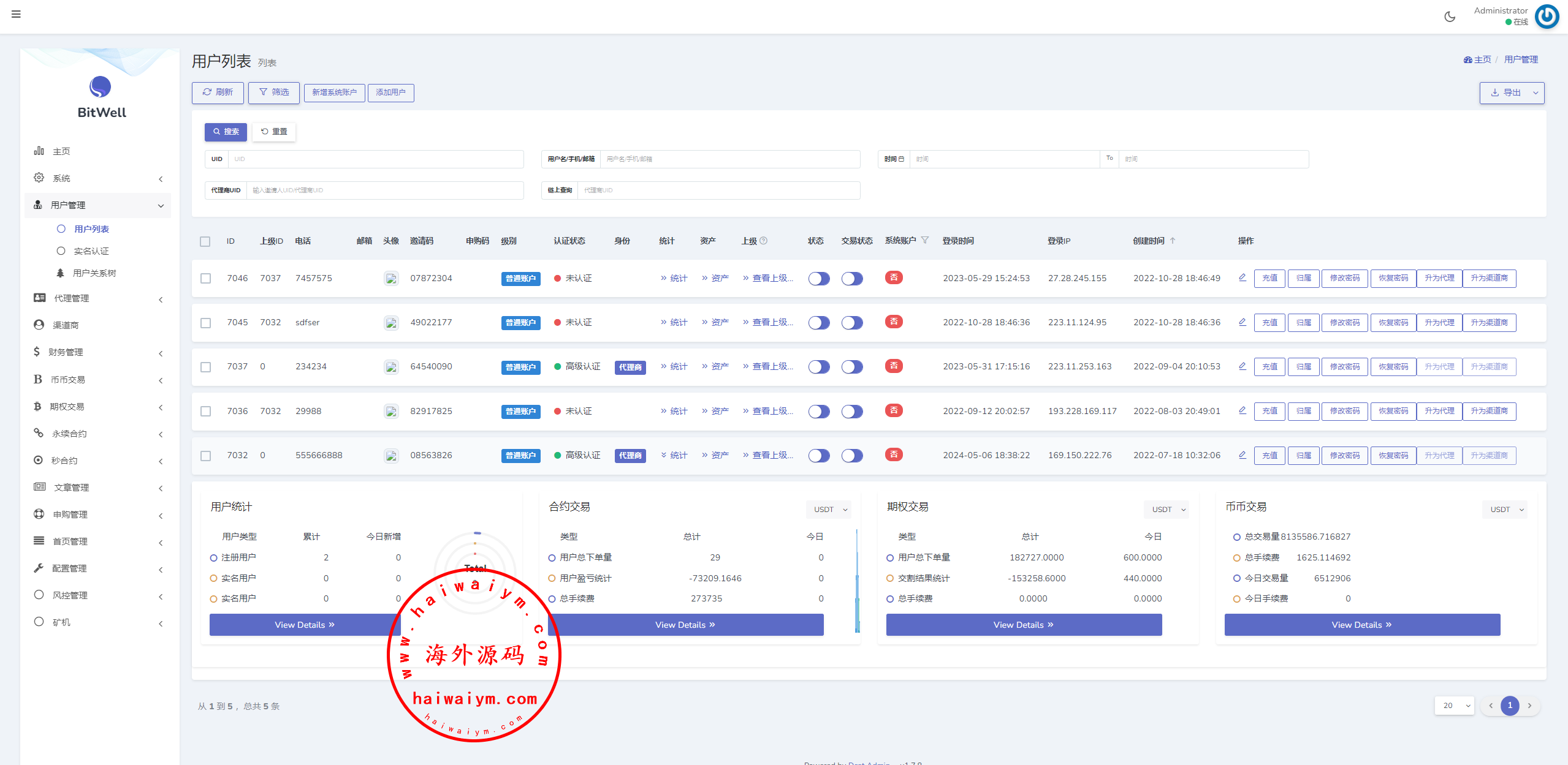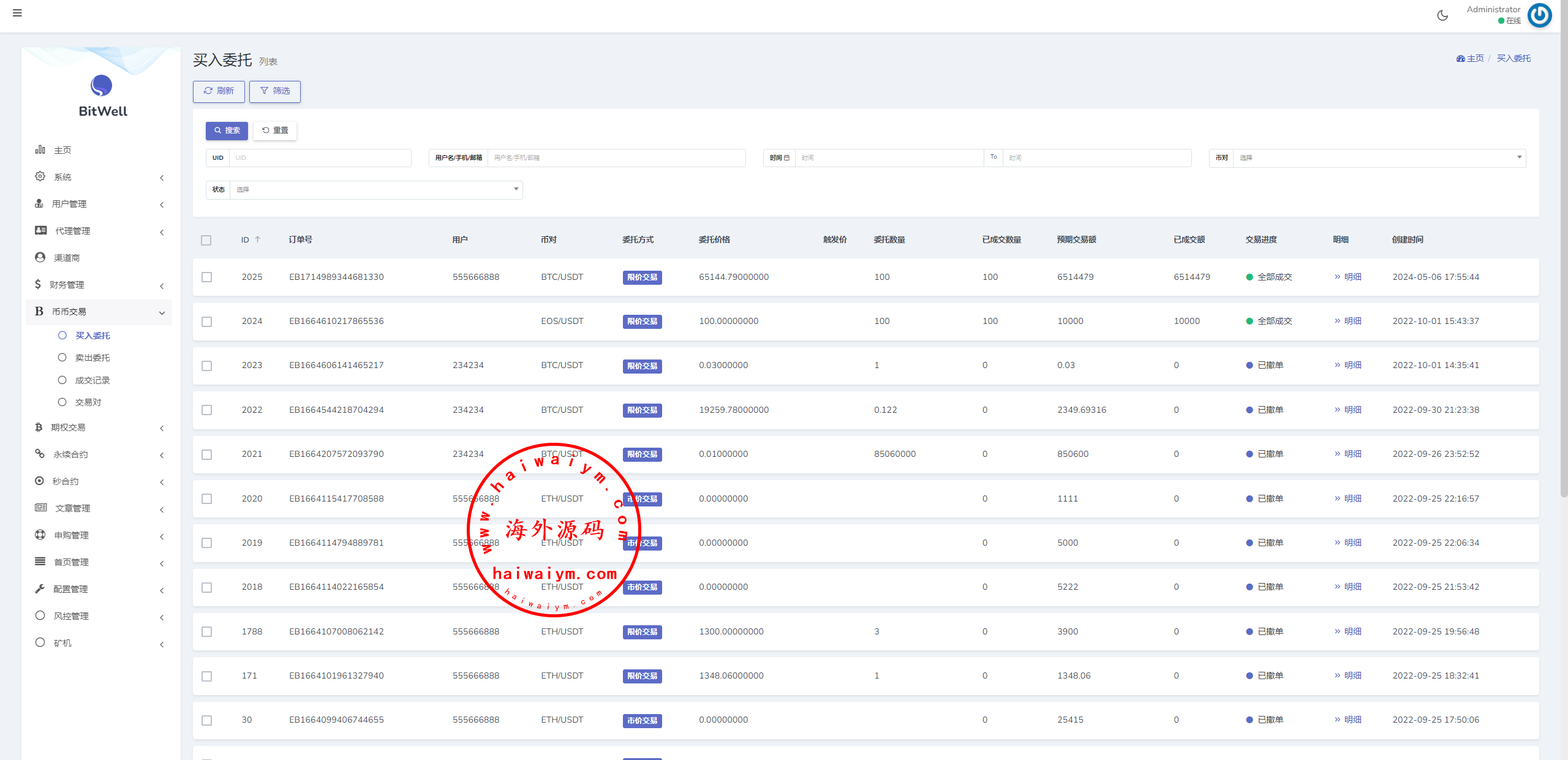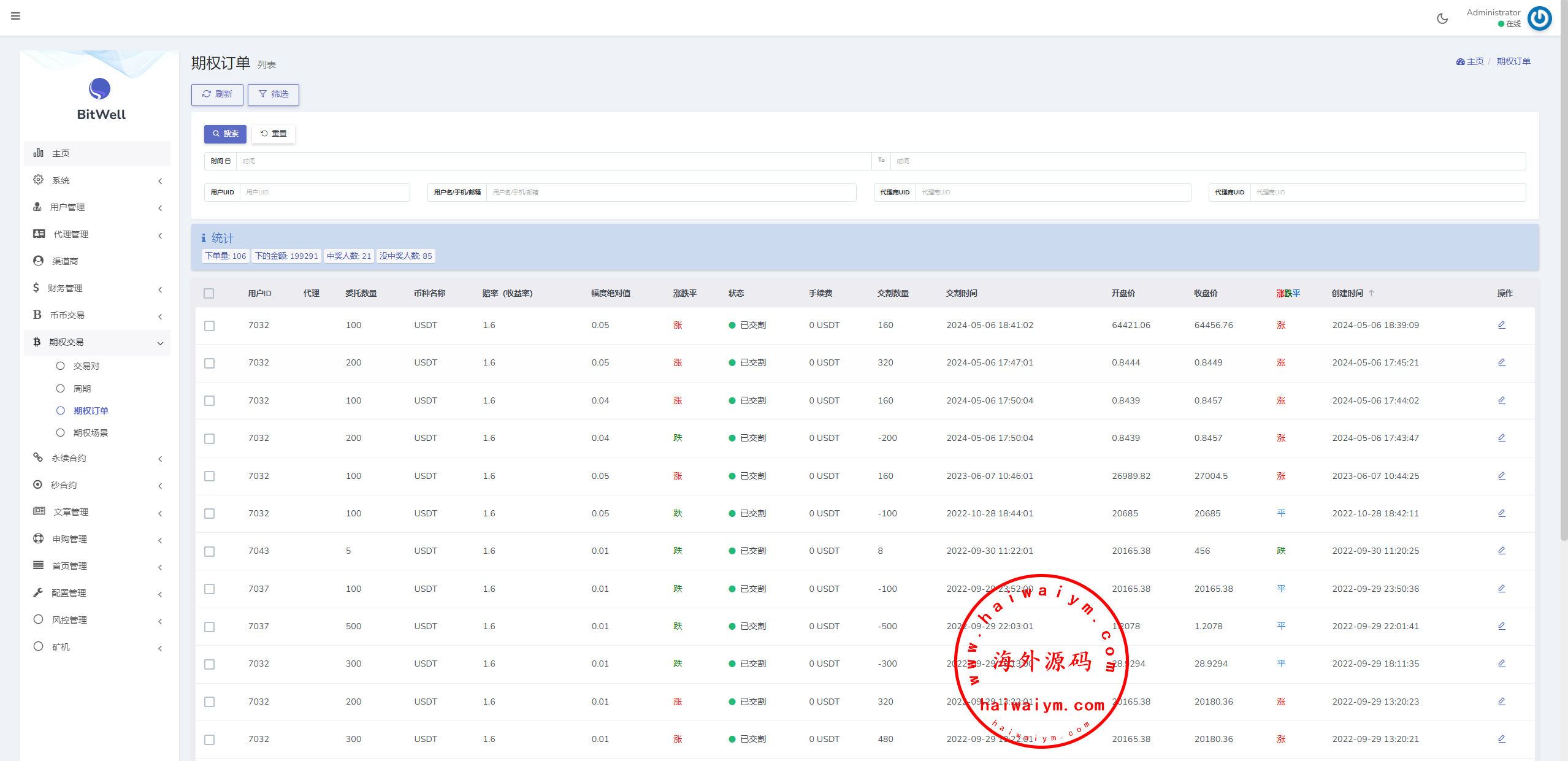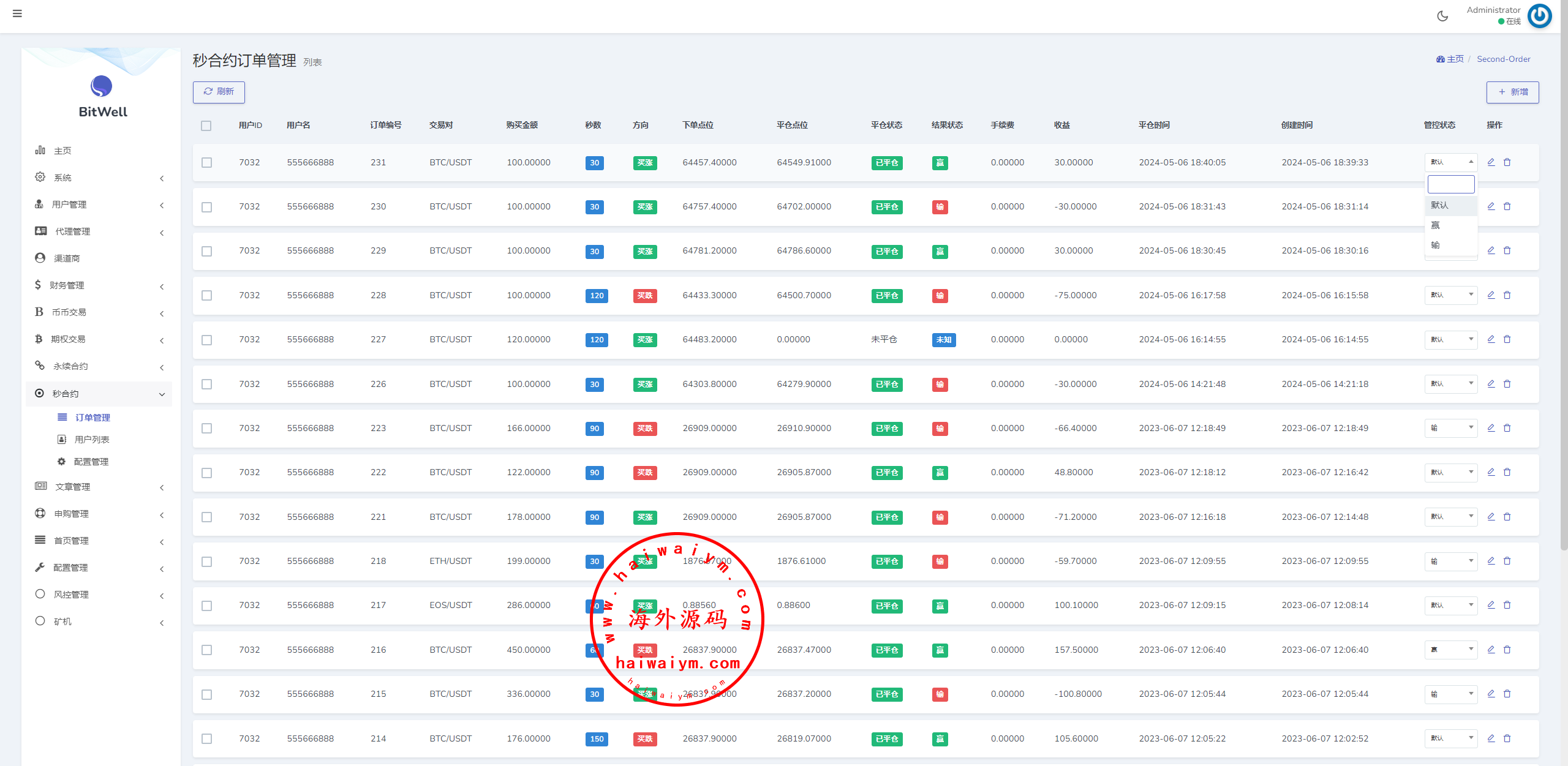海外交易所系统/合约/期权/质押/秒合约/插针控制/申购