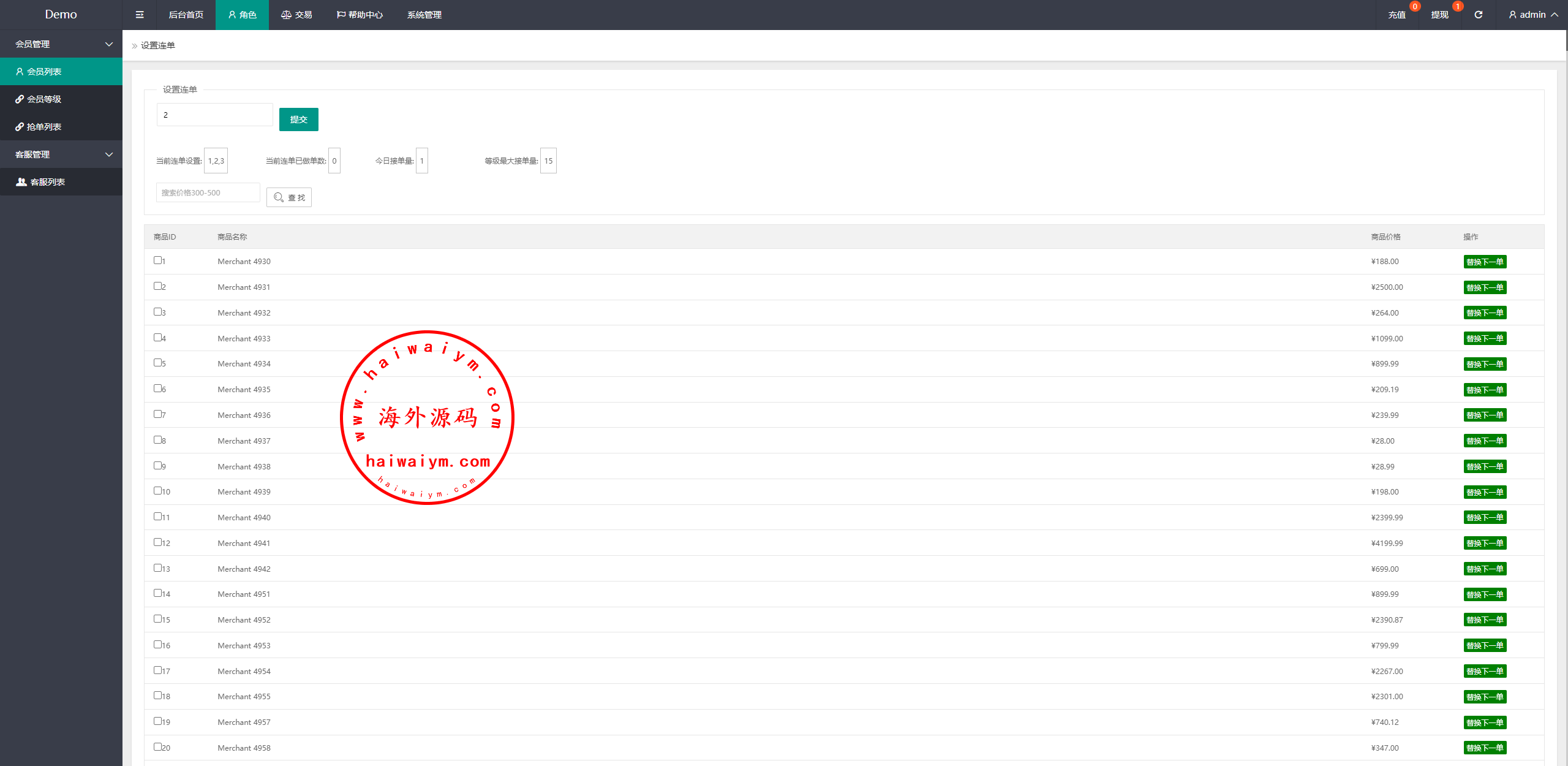 韩国抢单刷单系统/多语言刷单商城/打针/信用分/代理后台
