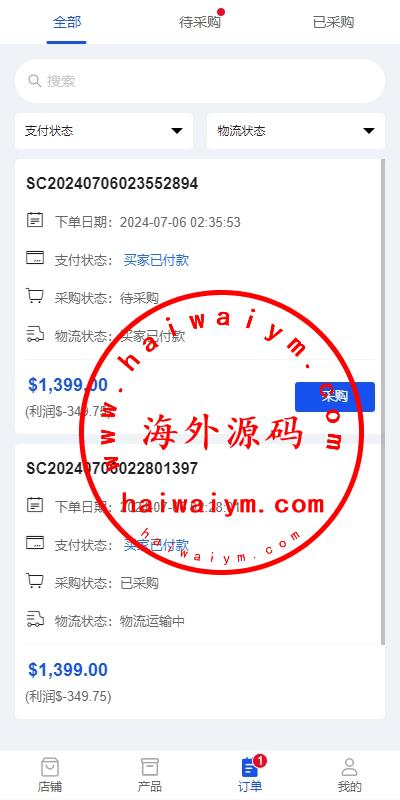 系统买家端+卖家端+代理端+后台管理端+客服端
