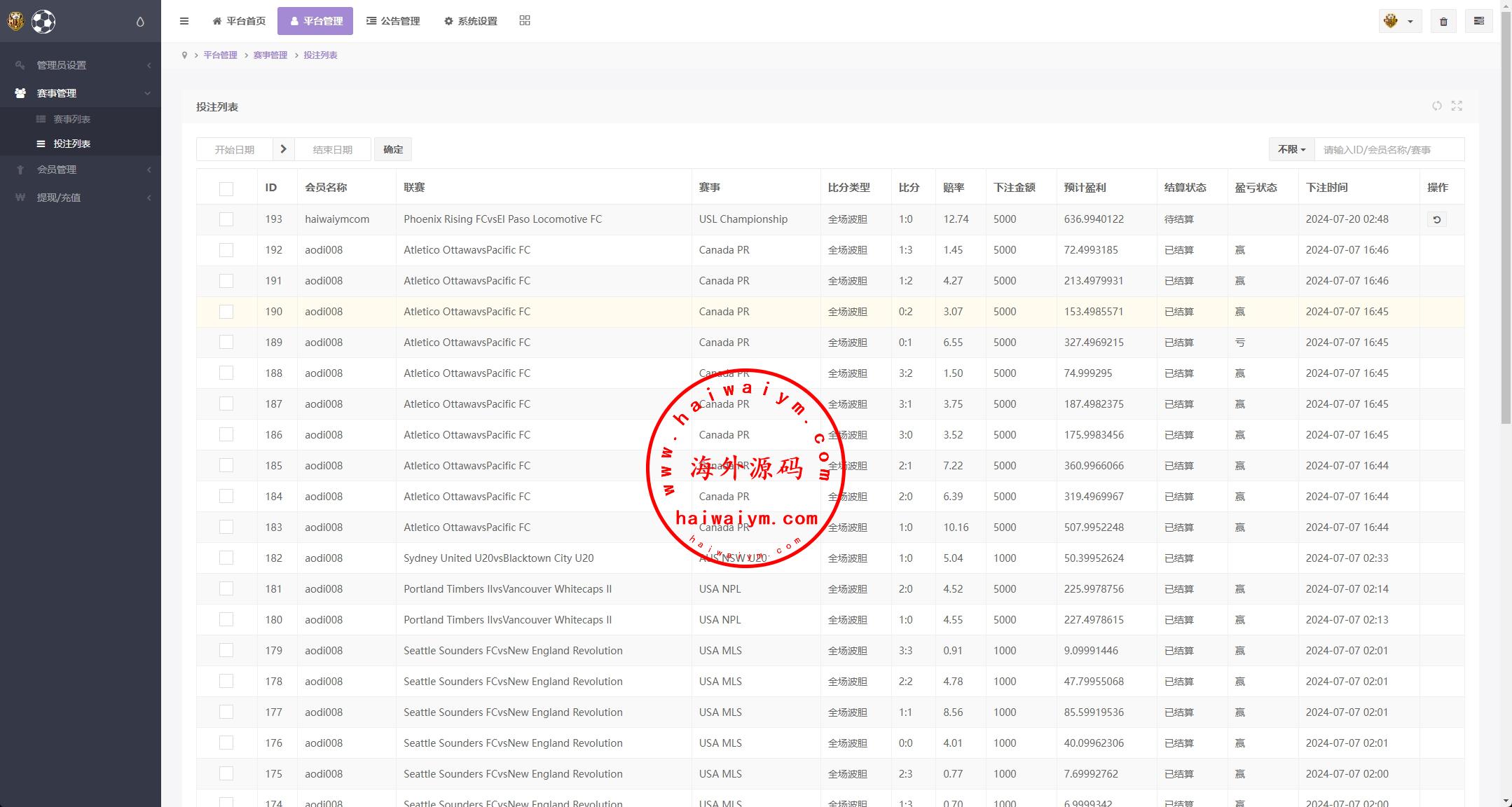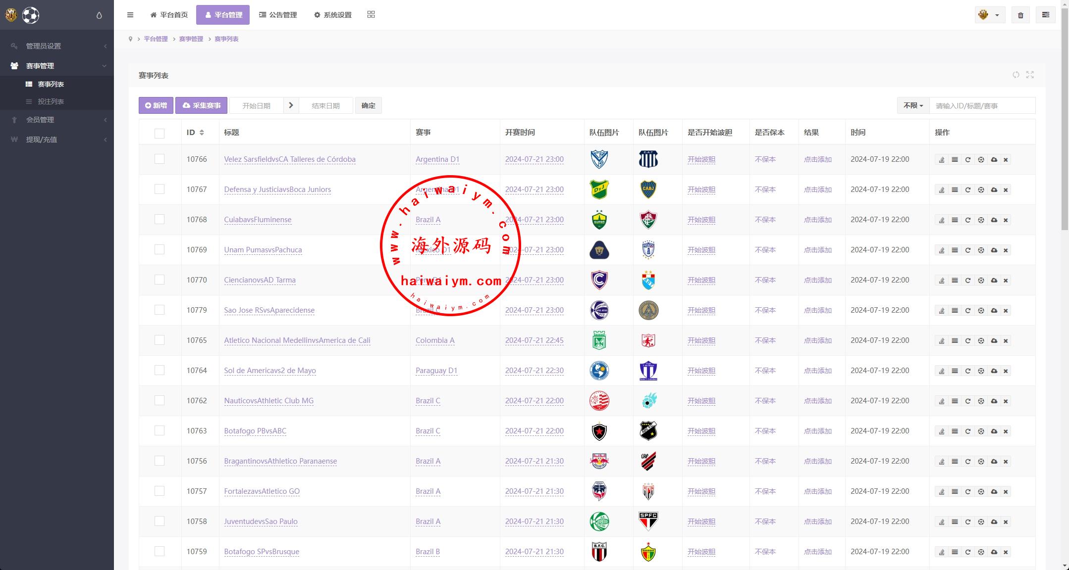 系统赛事数据自动采集,自动结算