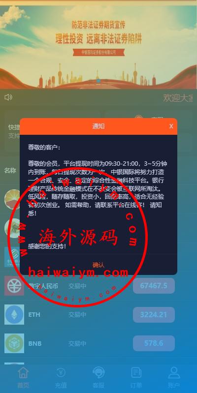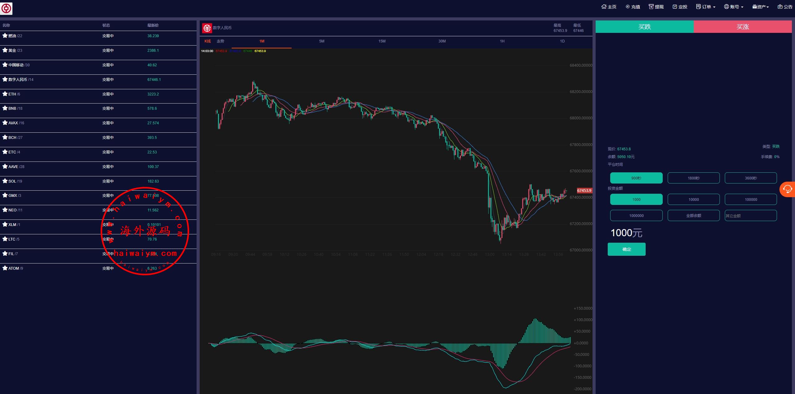 PC自适应微盘系统/微交易所/伪交易所/利息宝/单控全控
