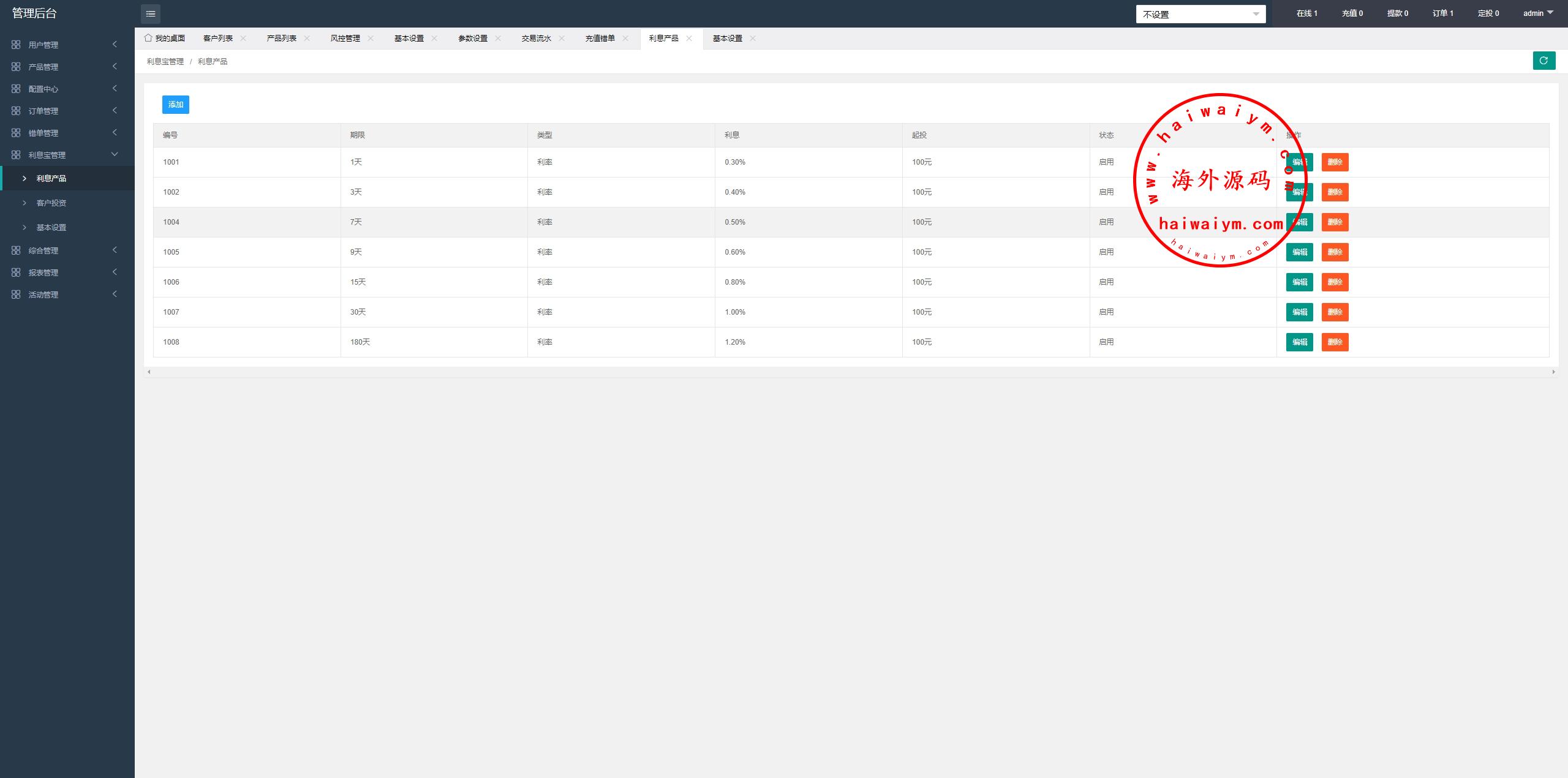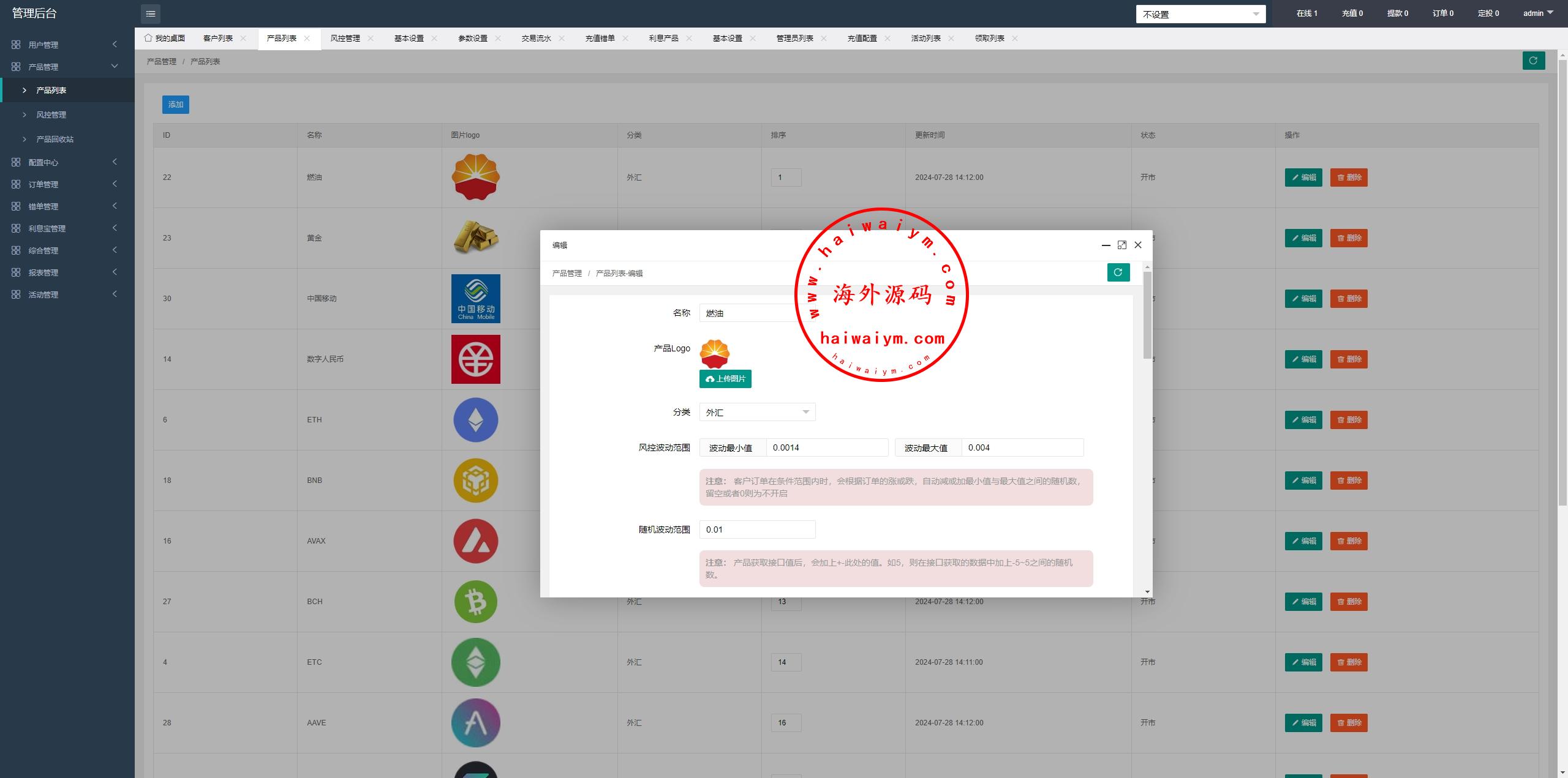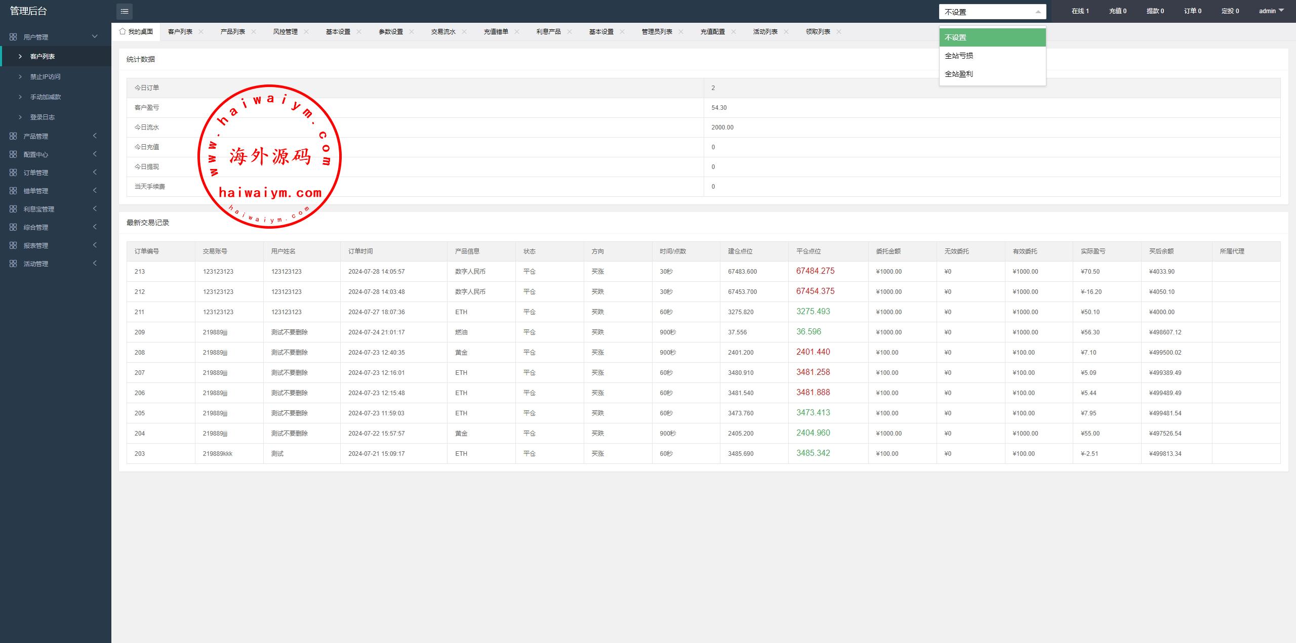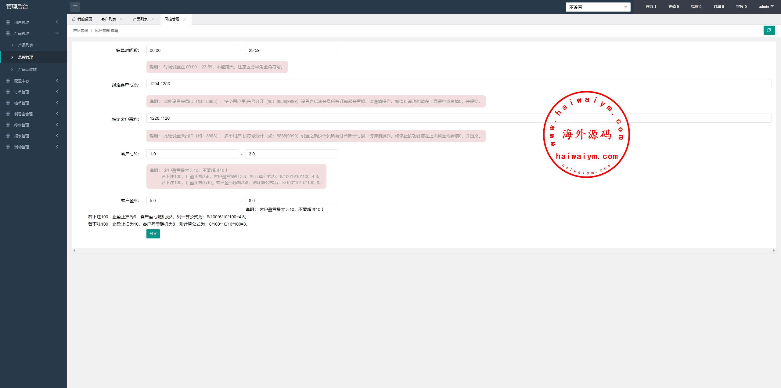 新增:利息宝、单控全控、错单管理、注册送彩金、k线风控波动范围设置等多个功能