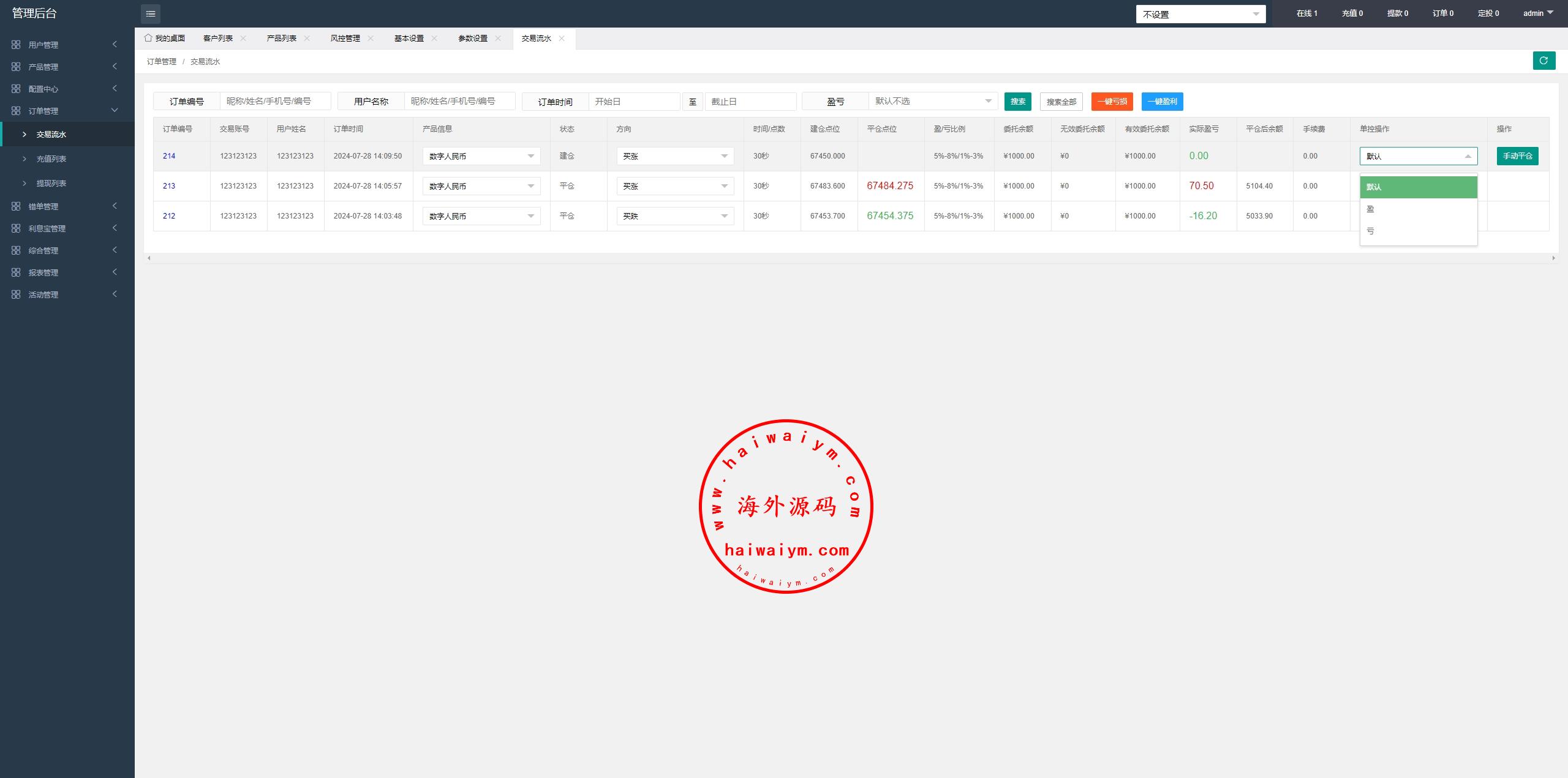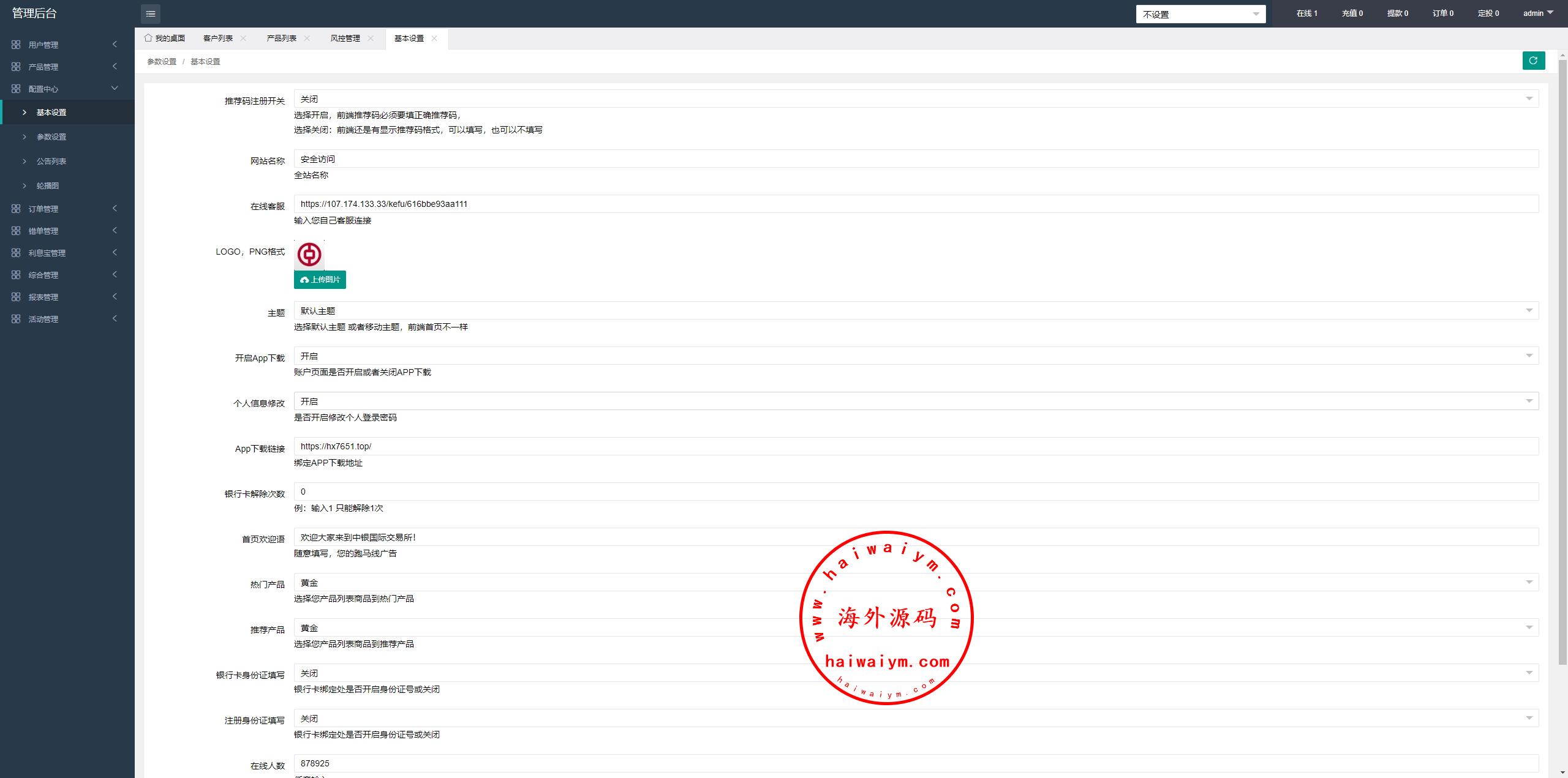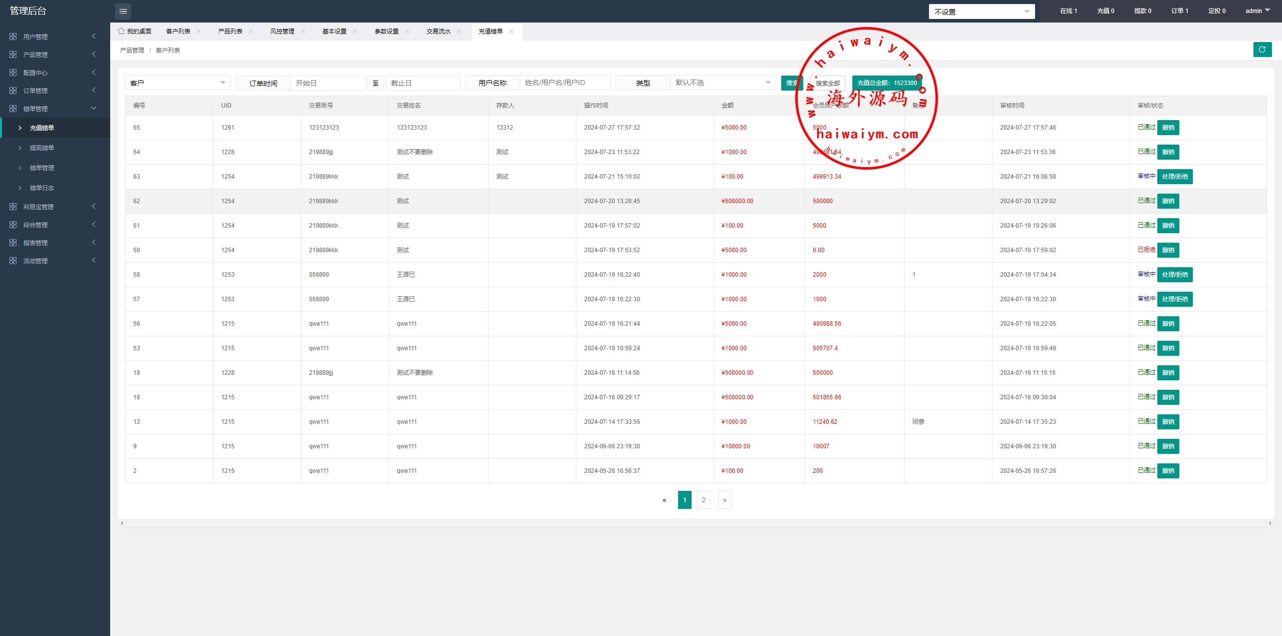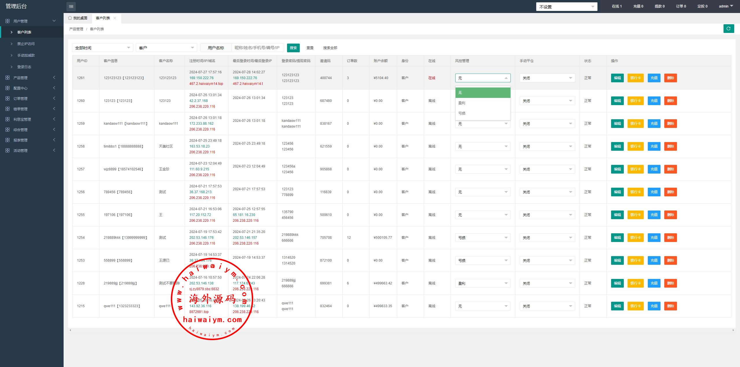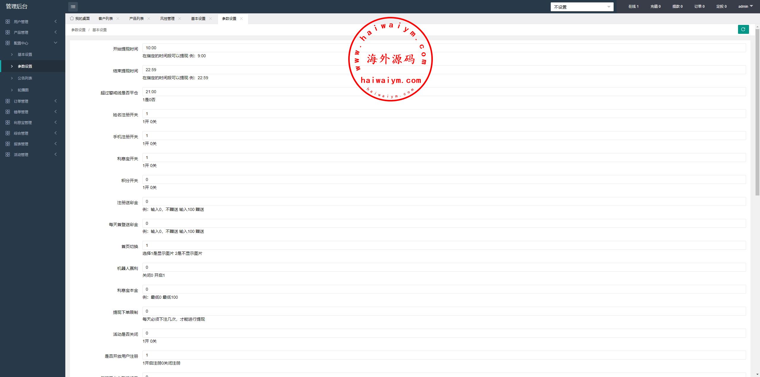 新增:利息宝、单控全控、错单管理、注册送彩金、k线风控波动范围设置等多个功能