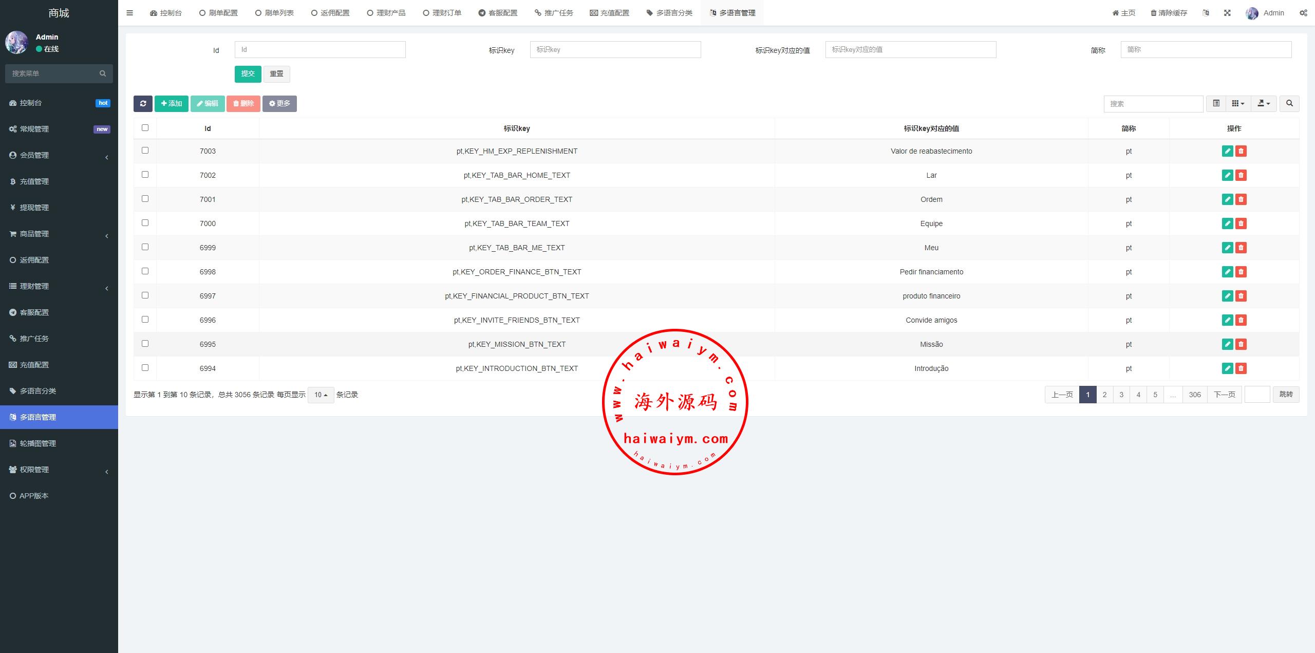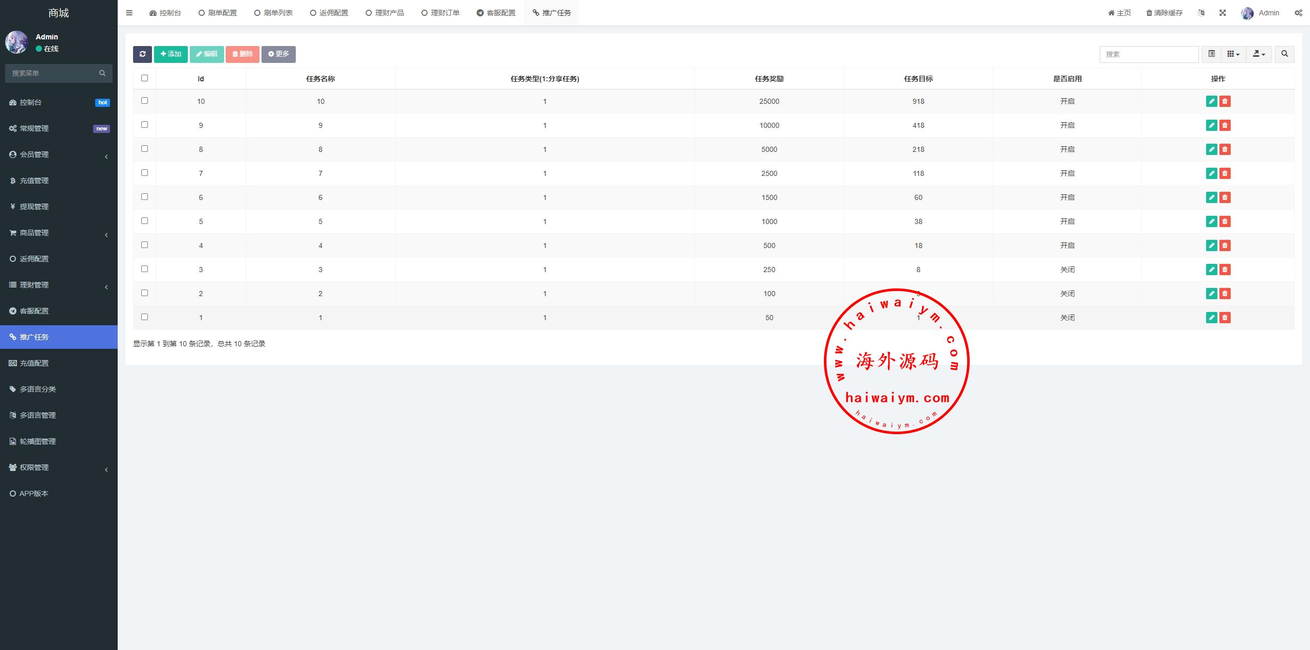 前端带多语言,余额宝,推广任务,派单卡单等功能