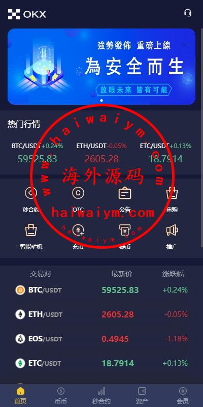 新版UI仿OKX多语言交易所,手机uniapp开发,后端跟代理后台laravel框架