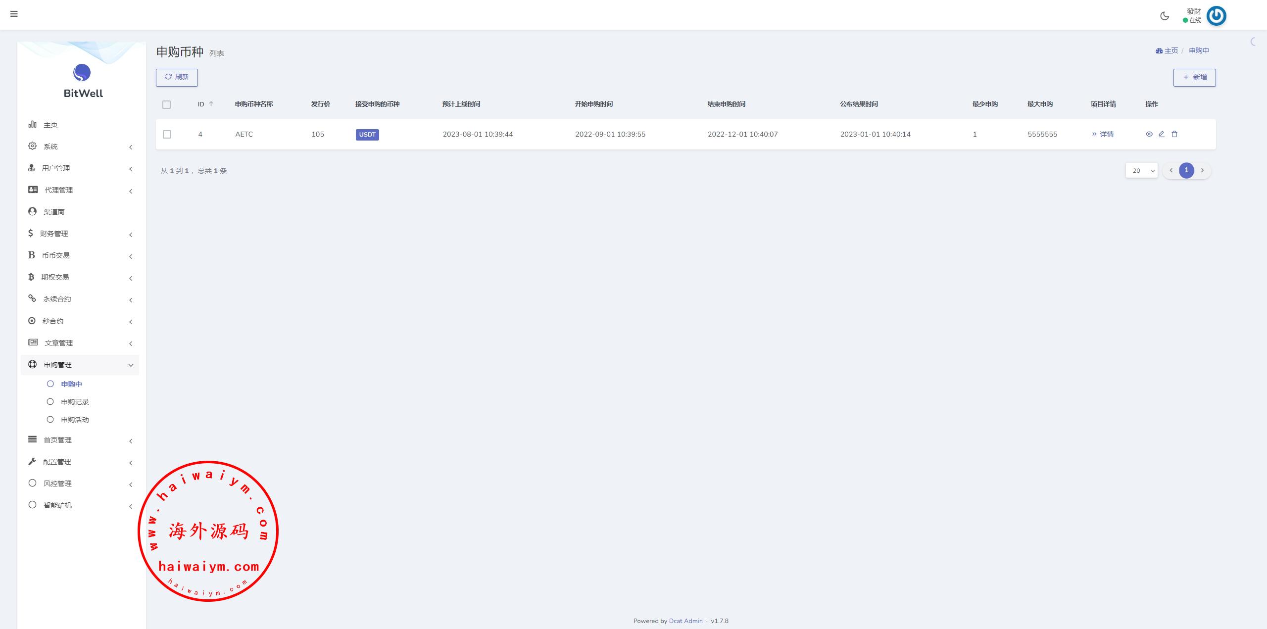 海外多语言交易所/合约/期权/秒合约/插针控制/申购