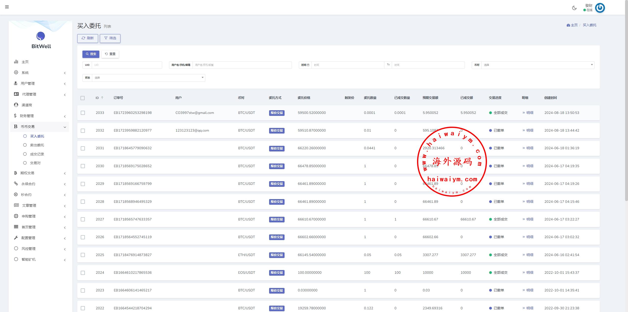 多语言综合交易所系统/外汇/期货/虚拟币/量化/申购交易