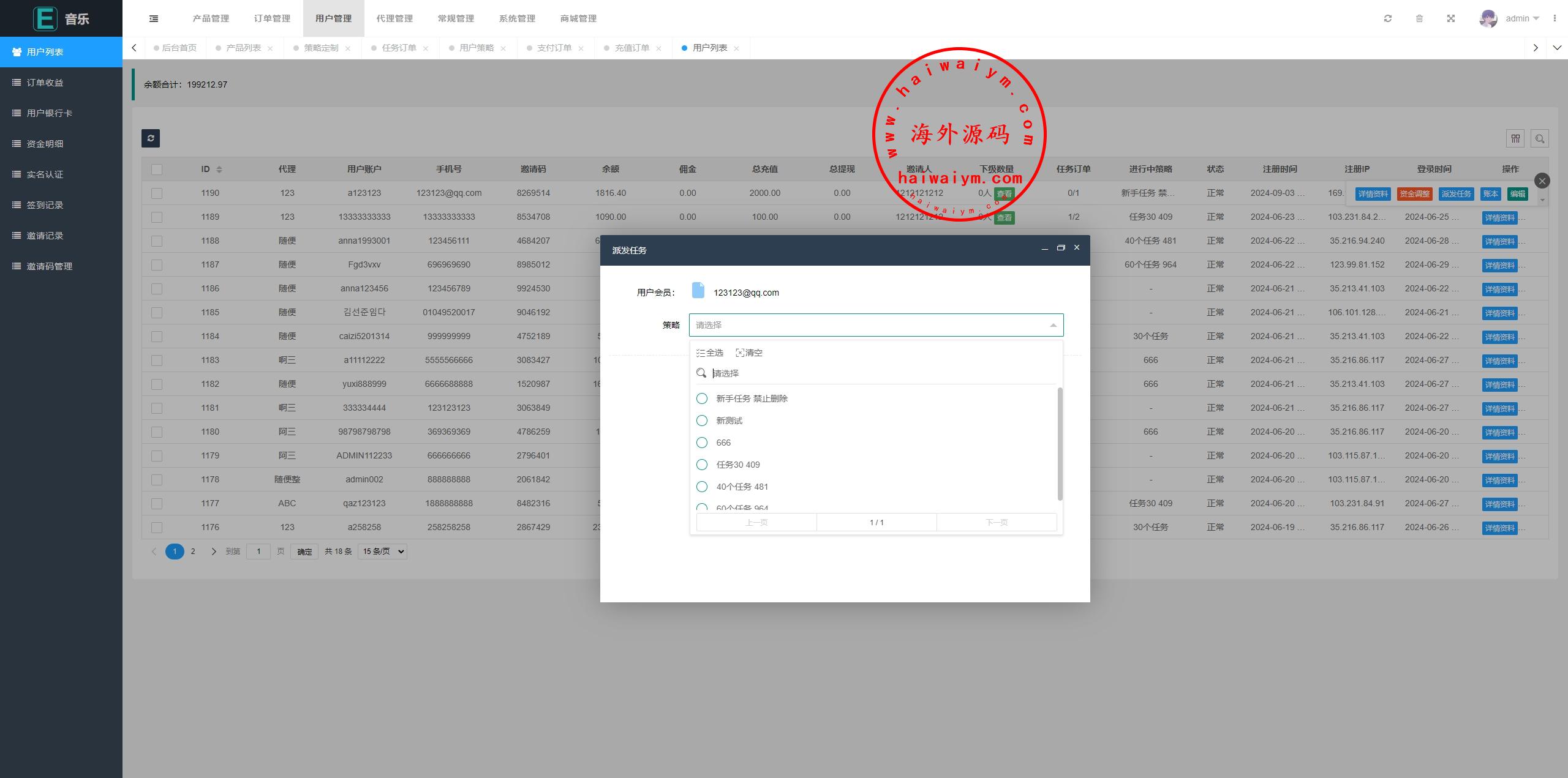 多语言音乐刷单系统/海外音乐刷单抢单/策略组派单/前端uniapp