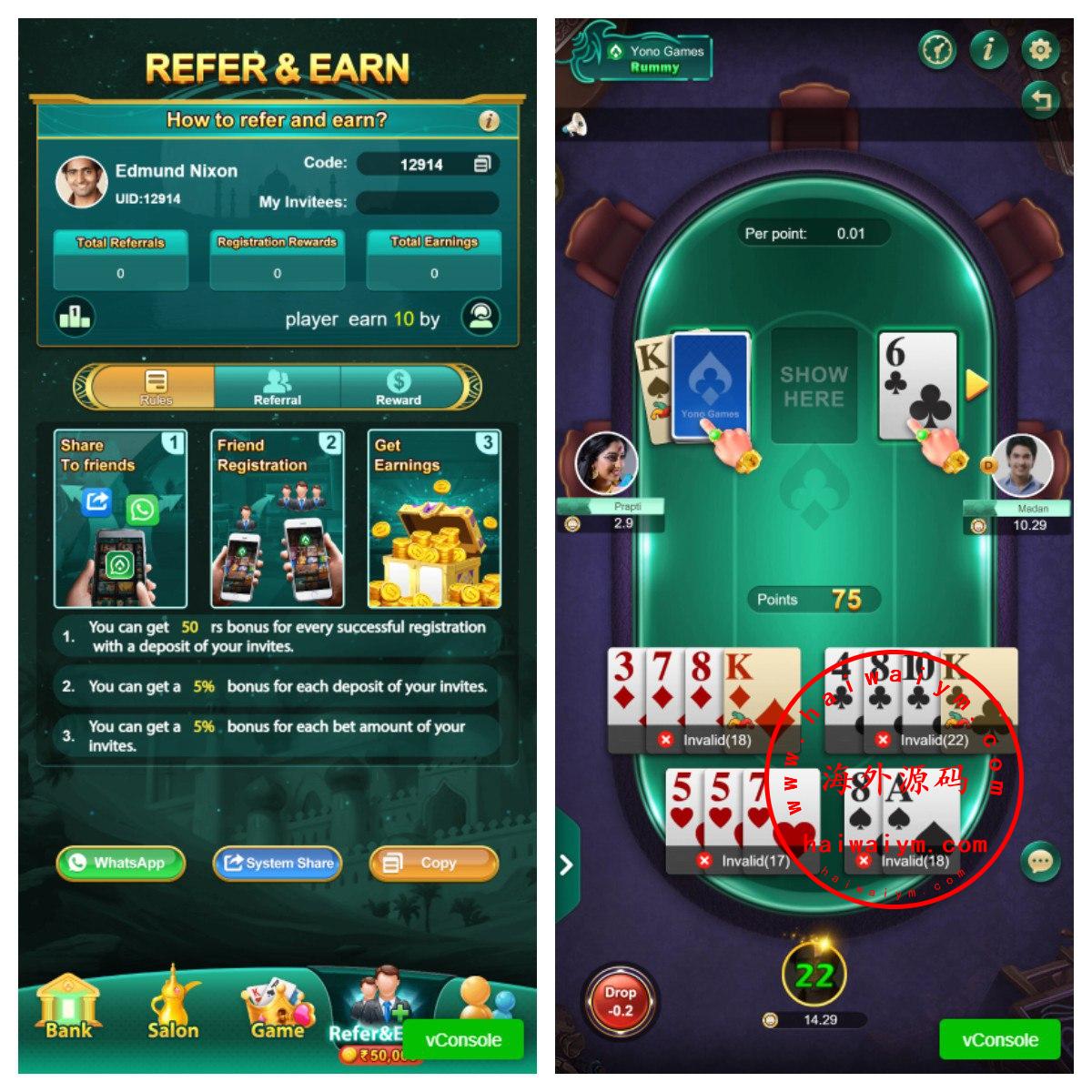 印度rummy拉米游戏源码,内带多款slots印度游戏,竖版支持双端+H5是目前比较火热的游戏之一,数值一流是一款真正上架运营的产品。