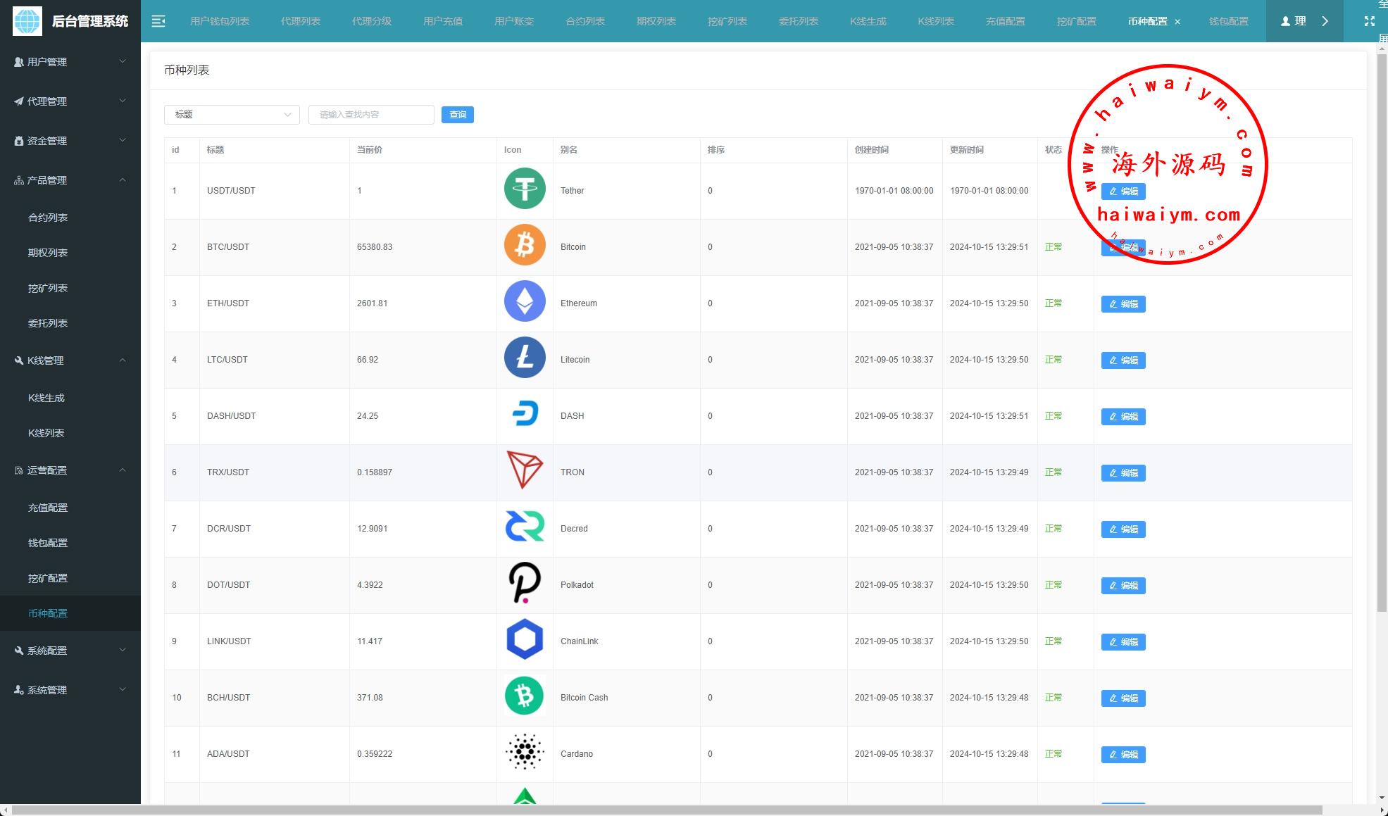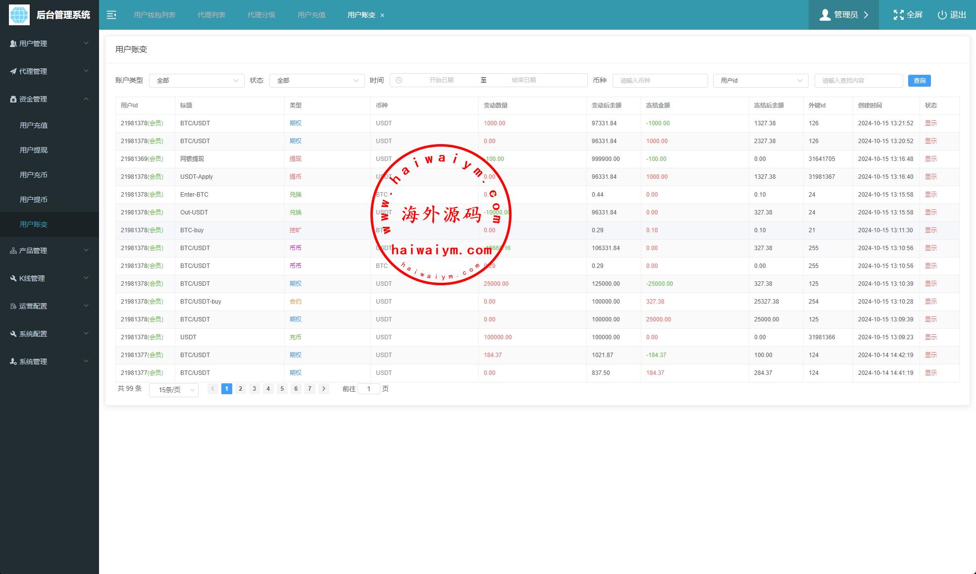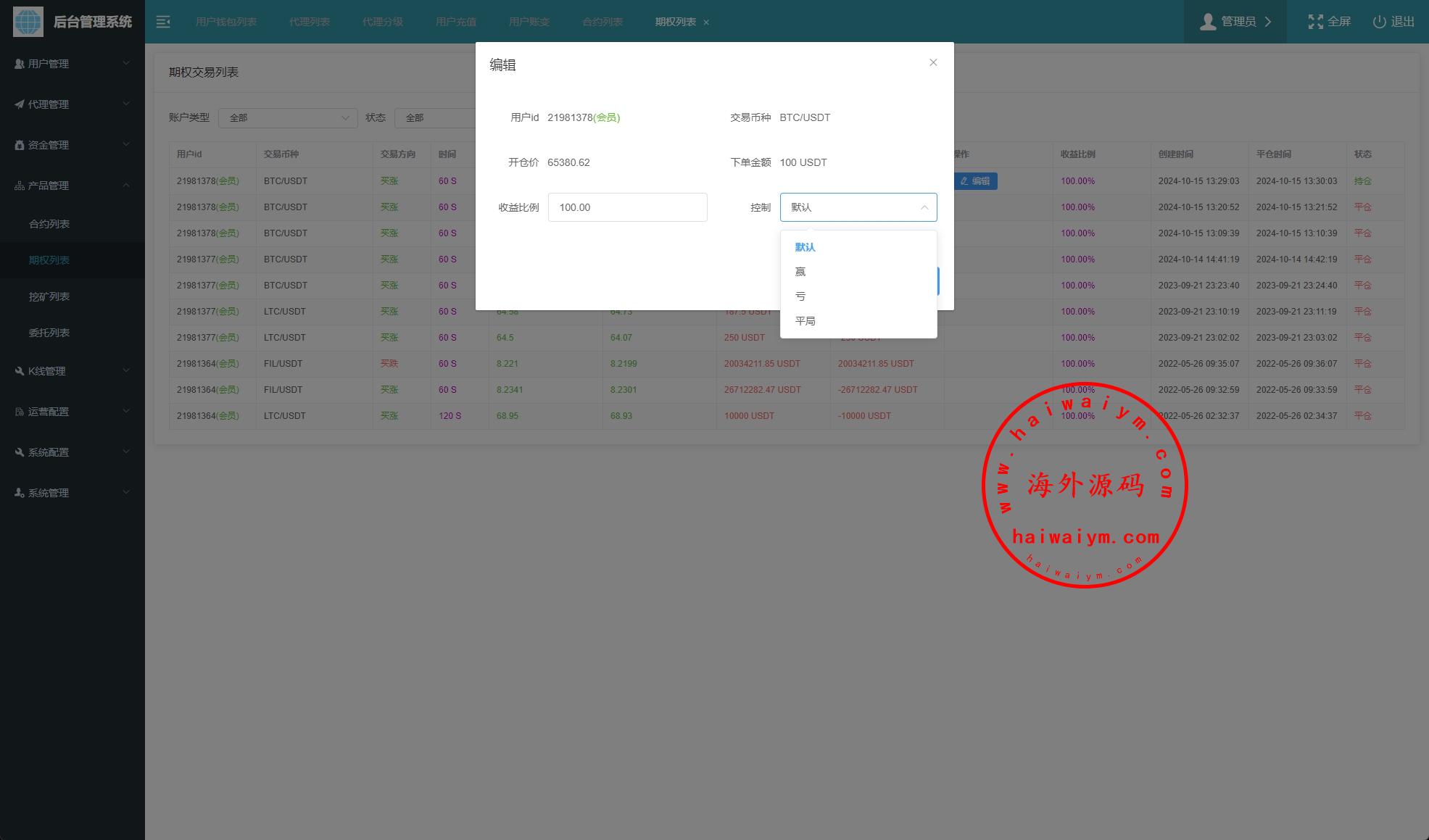 海外运营版交易所系统/U本位/期权交易/挖矿/兑换/全币K线控制