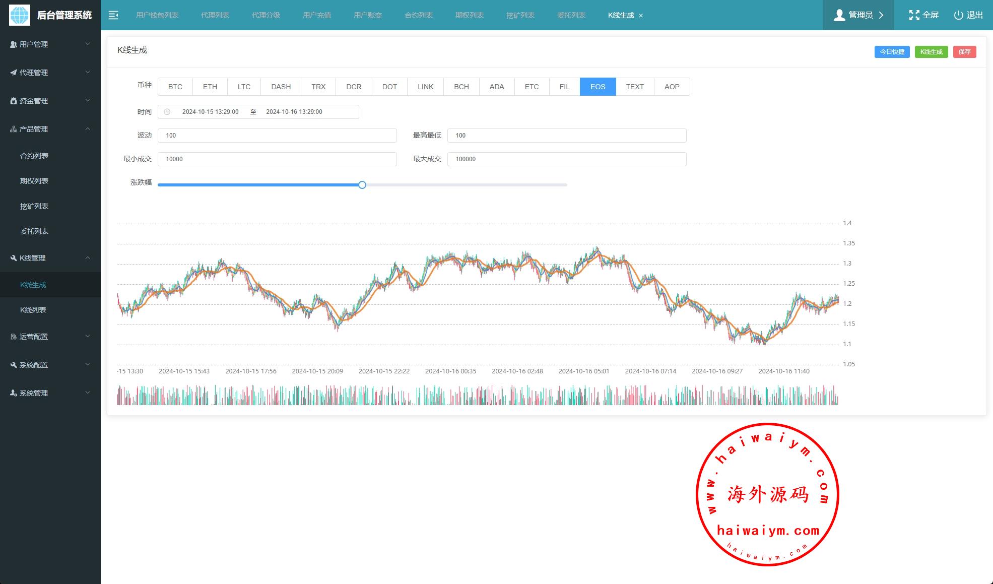 新版海外交易所系统全新开发无需ES繁琐安装,全币种可控制自定义生成K线