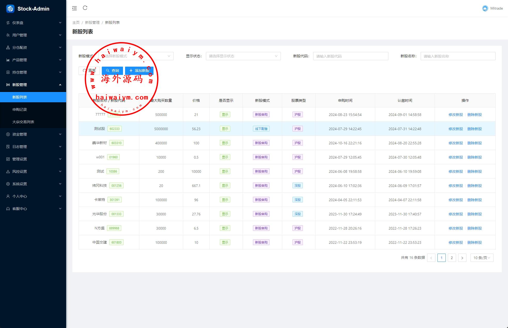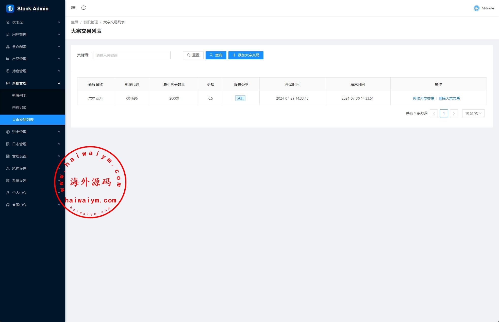 系统前端单a股交易、新股申购、大宗交易等功能前端、代理后台、总后台VUE开发,服务端java开发带纯源码跟教程