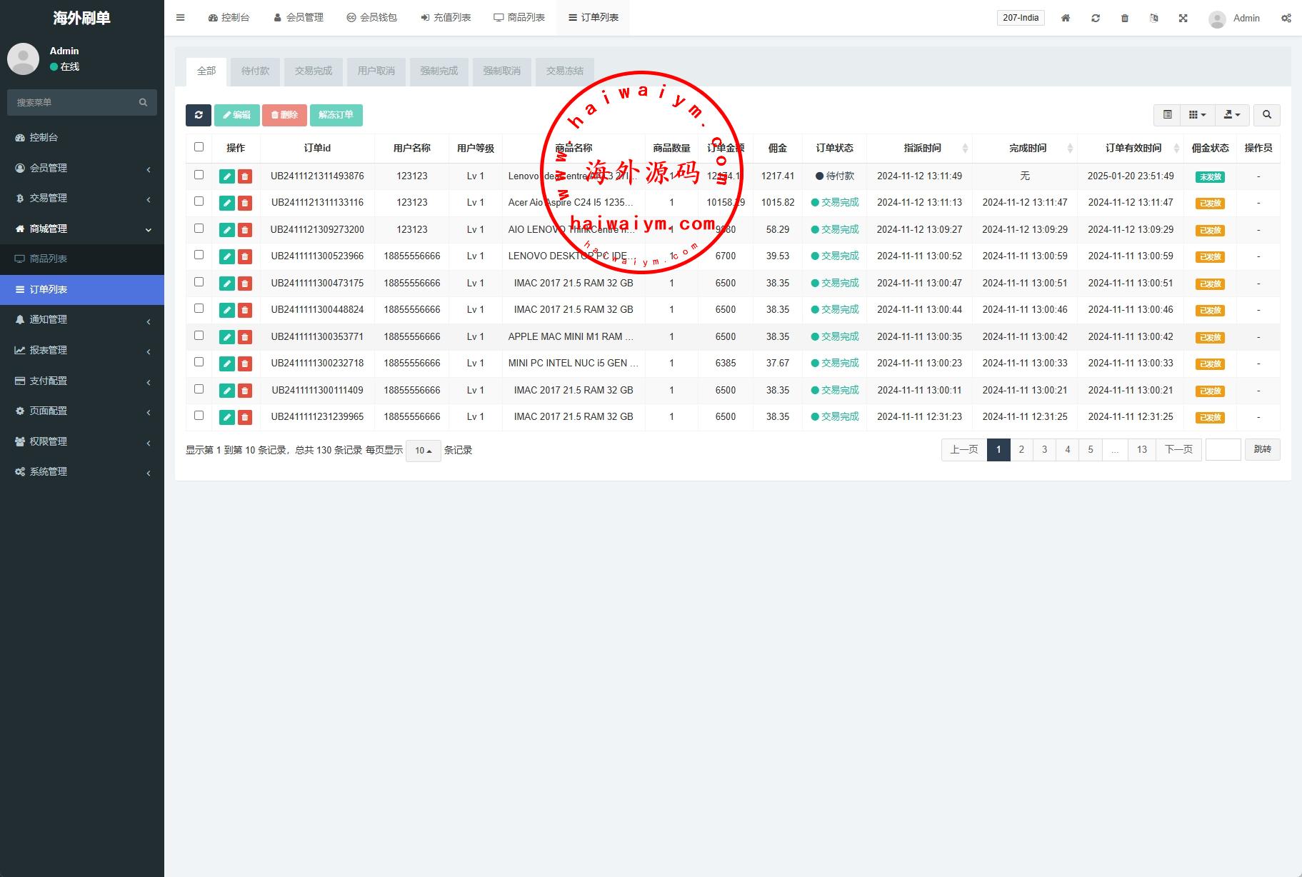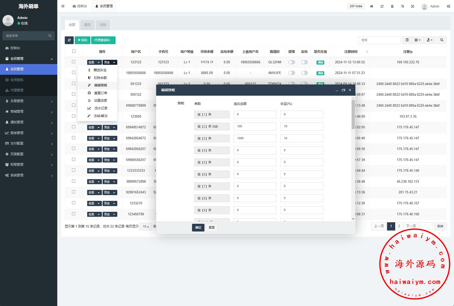 韩国抢单刷单系统/多语言刷单商城/打针/信用分/代理后台
