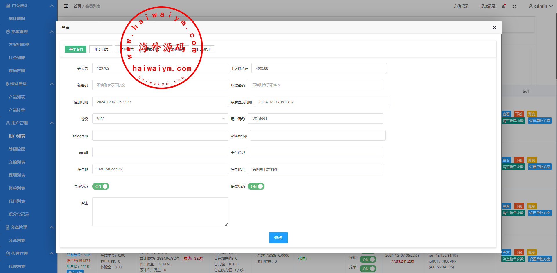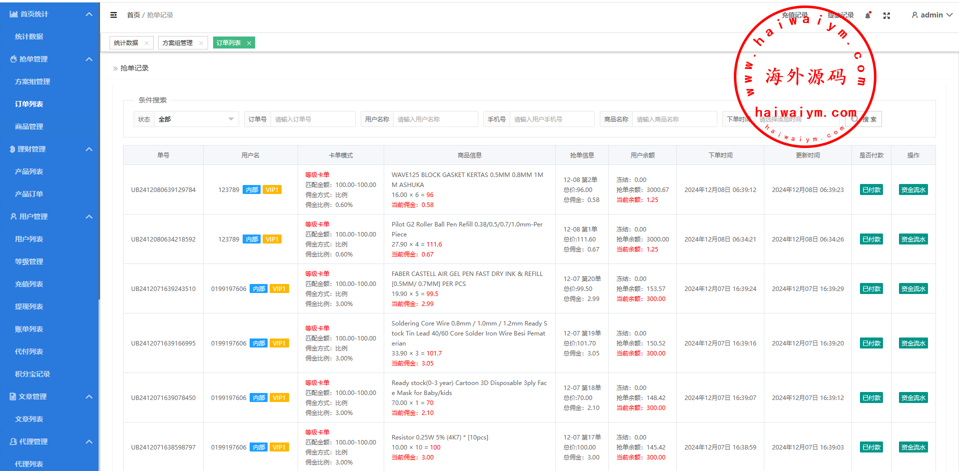 定制版海外抢单刷单系统/多语言亚马逊刷单/订单控/余额宝