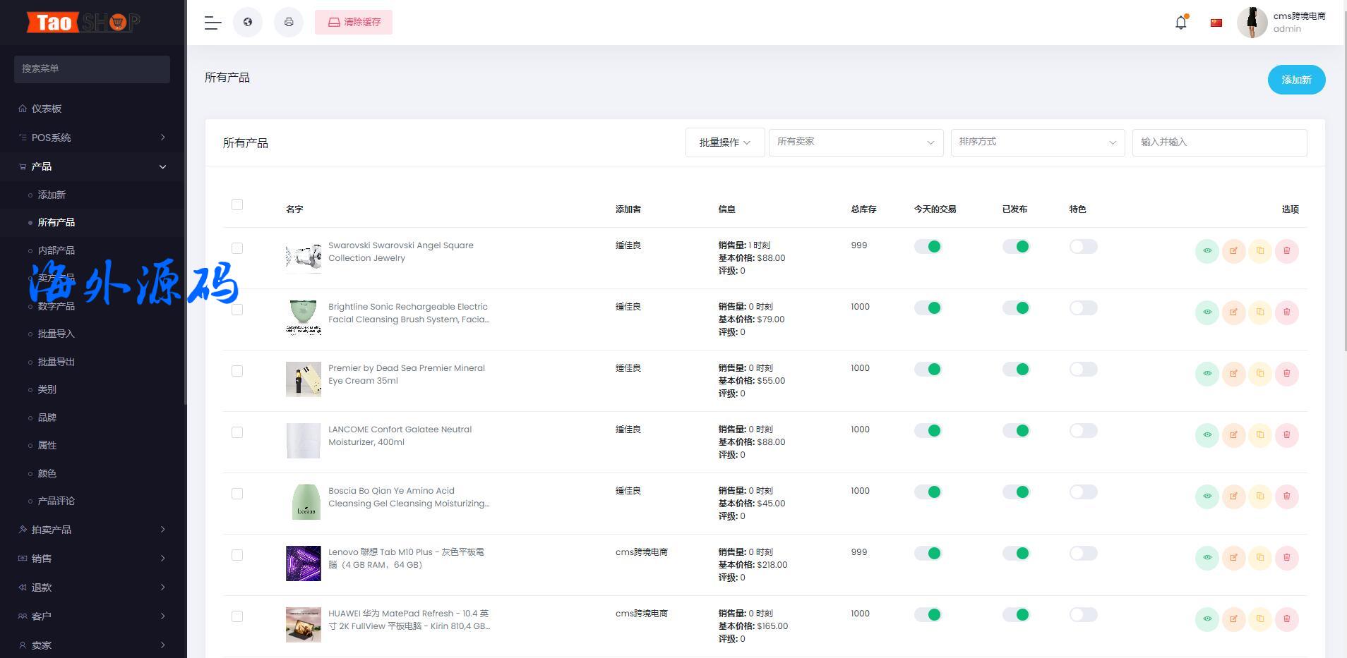 多语言海外电商系统,前端多种语言切换,支持后台添加任意语言
