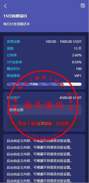高端多语言自动挖矿系统/海外质押理财/自定义语言