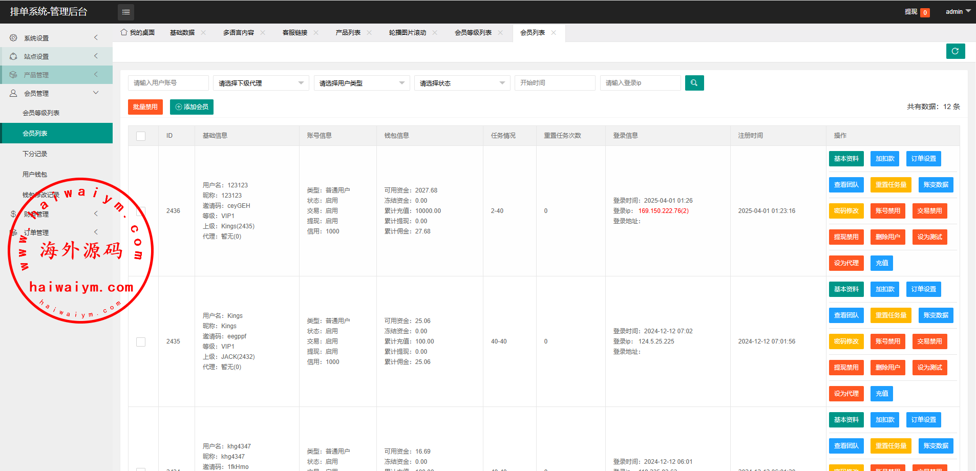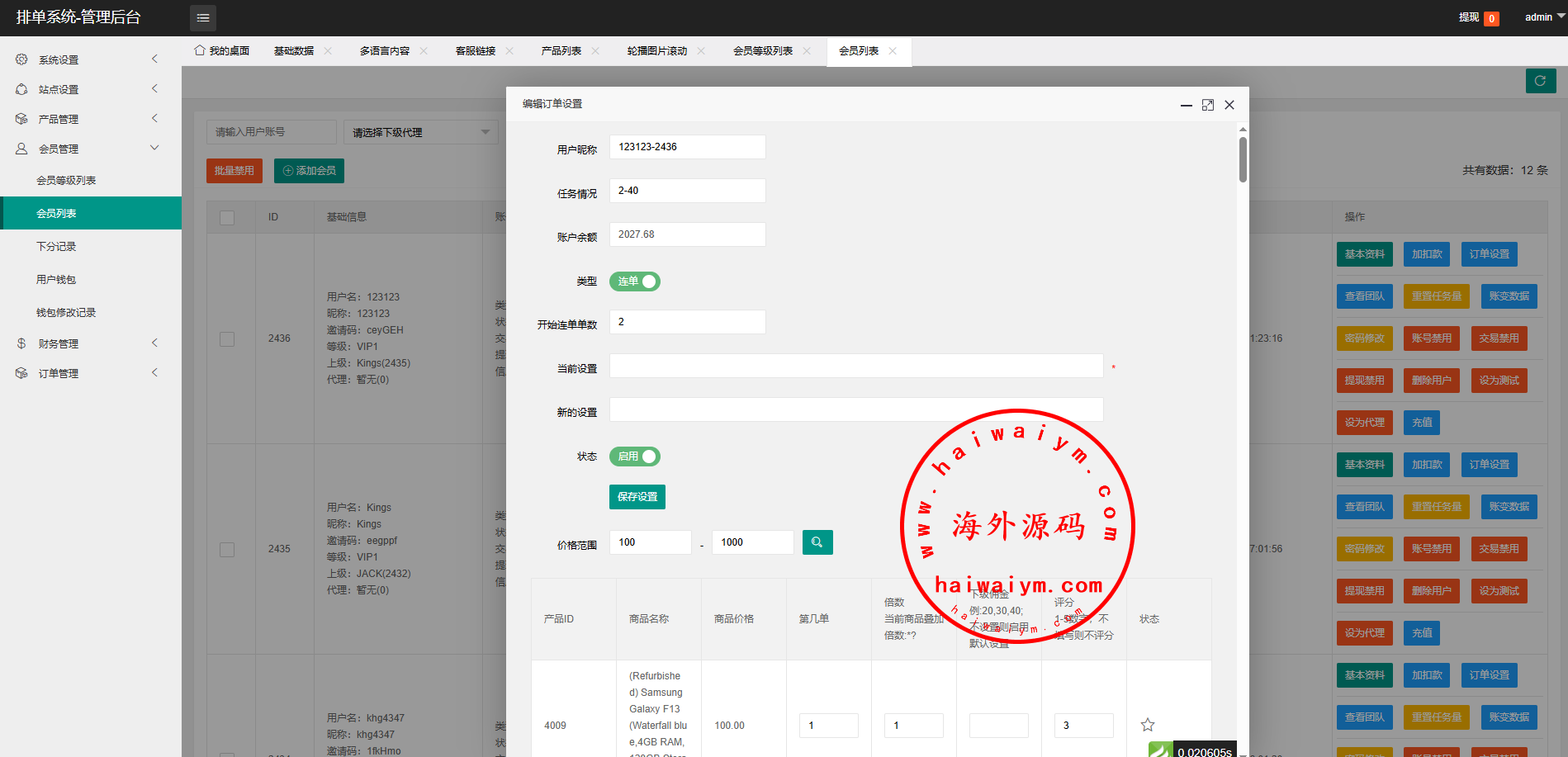 韩国抢单刷单系统/多语言刷单商城/打针/信用分/代理后台