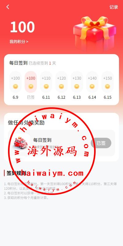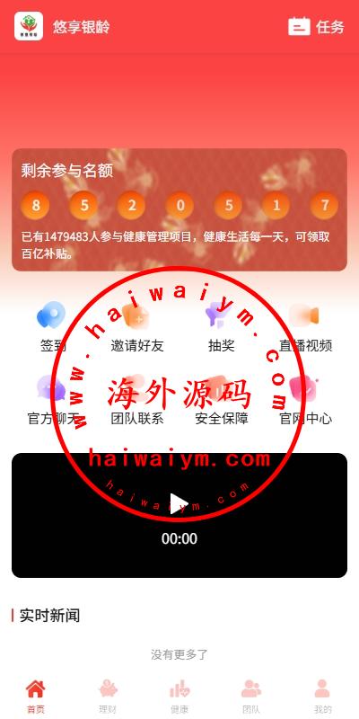系统功能:签到、抽奖、爱心公益、借贷、健康数据、积分商城活动任务等功能