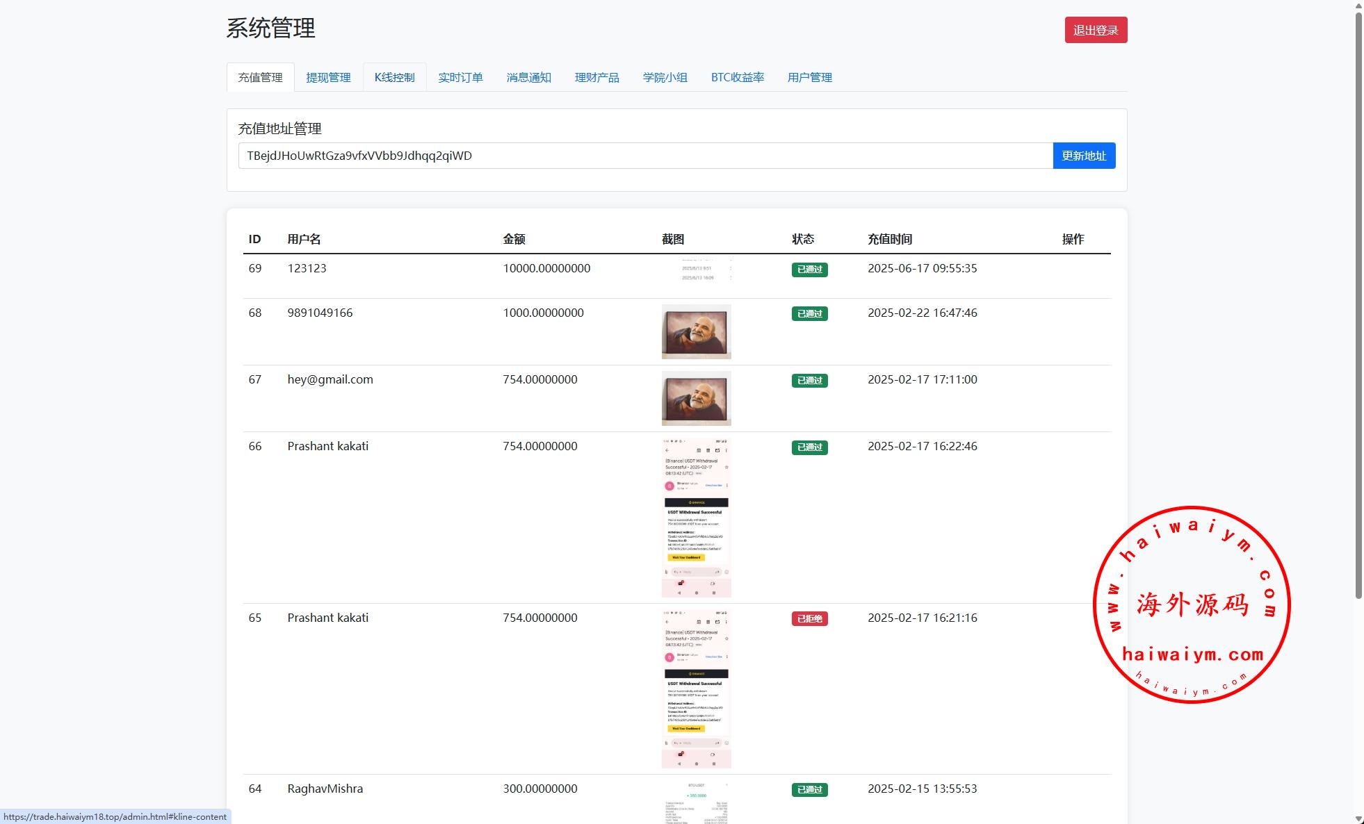 海外交易所系统/秒合约/杠杆交易/投资/K线控制
