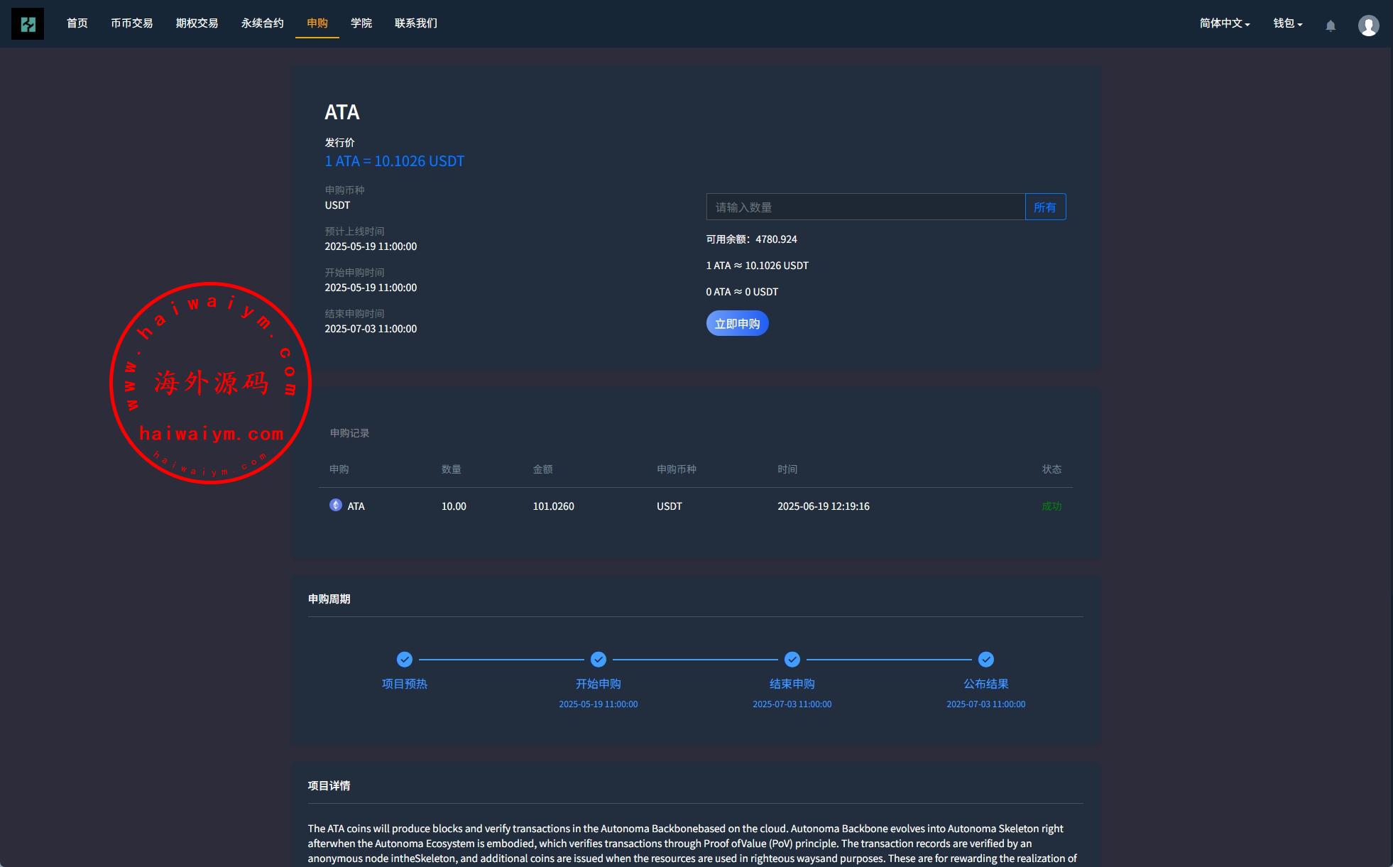多语言交易所系统/合约/期权/秒合约/插针控制/申购