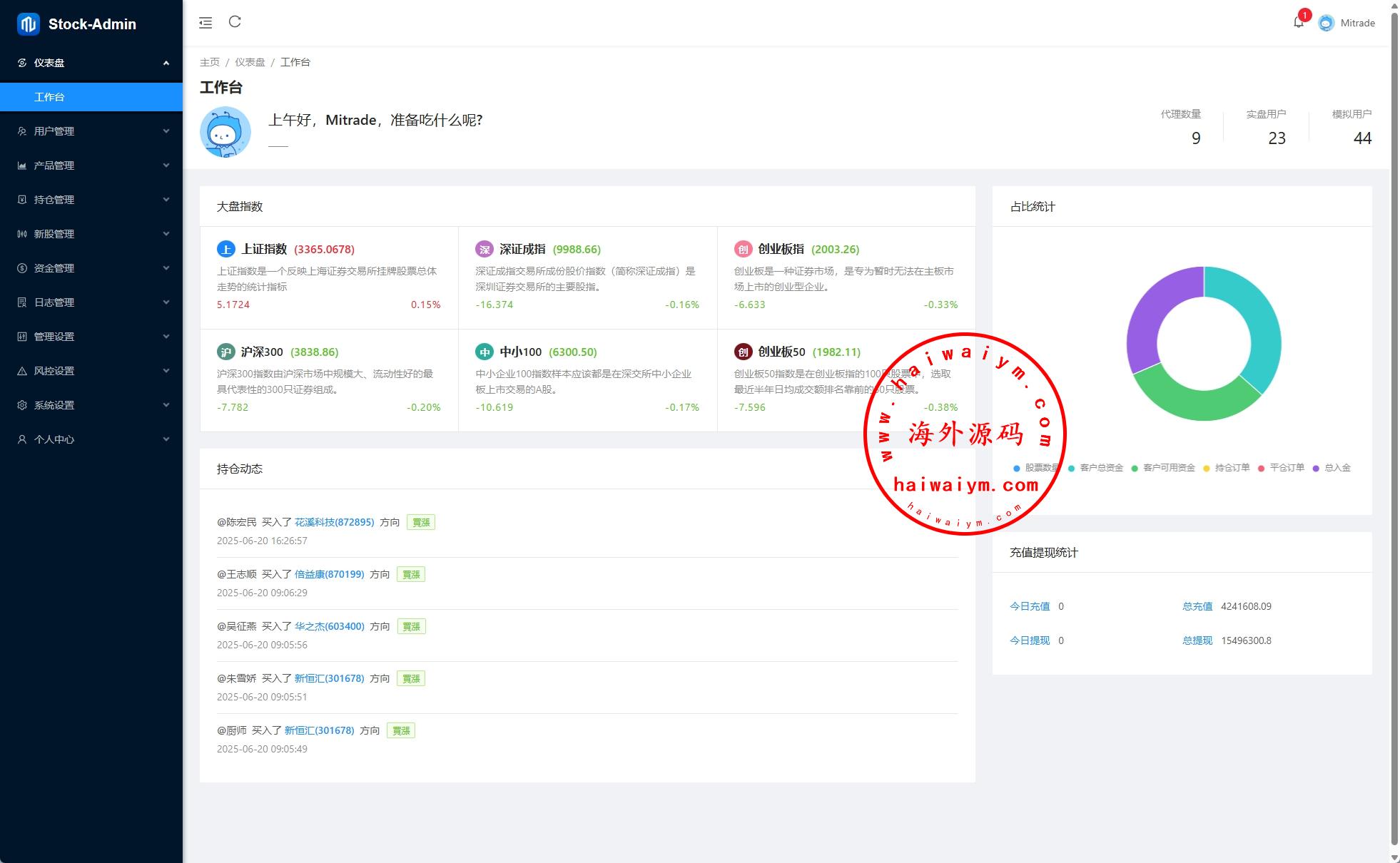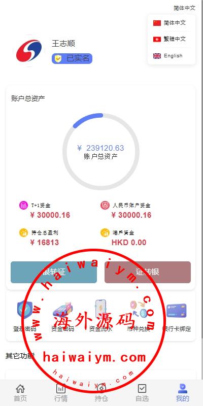 前端VUE,后台VUE,API端JAVA开发带源码 系统功能齐全,二开:涨停买入1000,后台手动通过100-900等
