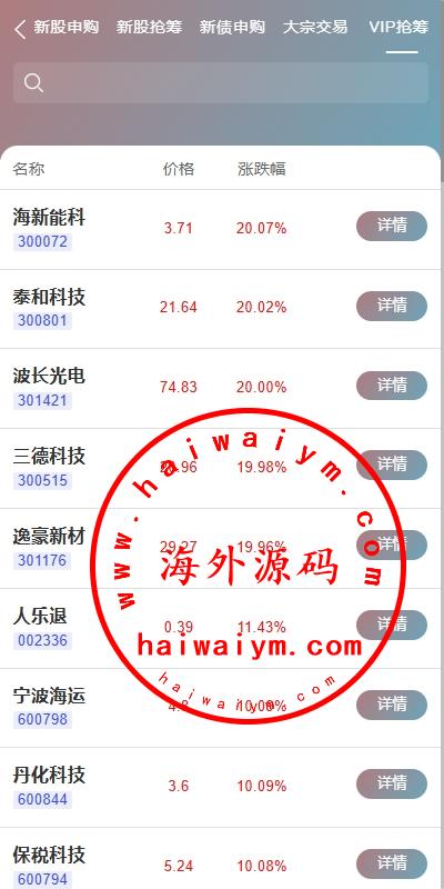 运营版JAVA股票系统/新股抢筹/大宗交易/VIP抢筹
