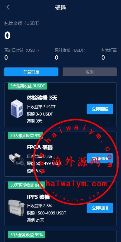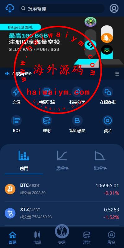 系统功能:永续合约、交割合约、现货交易、理财、矿池、质押借币等功能