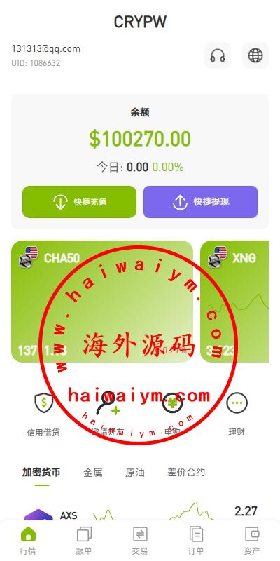 功能支持:跟单、申购、理财、K线拉升控制等功能