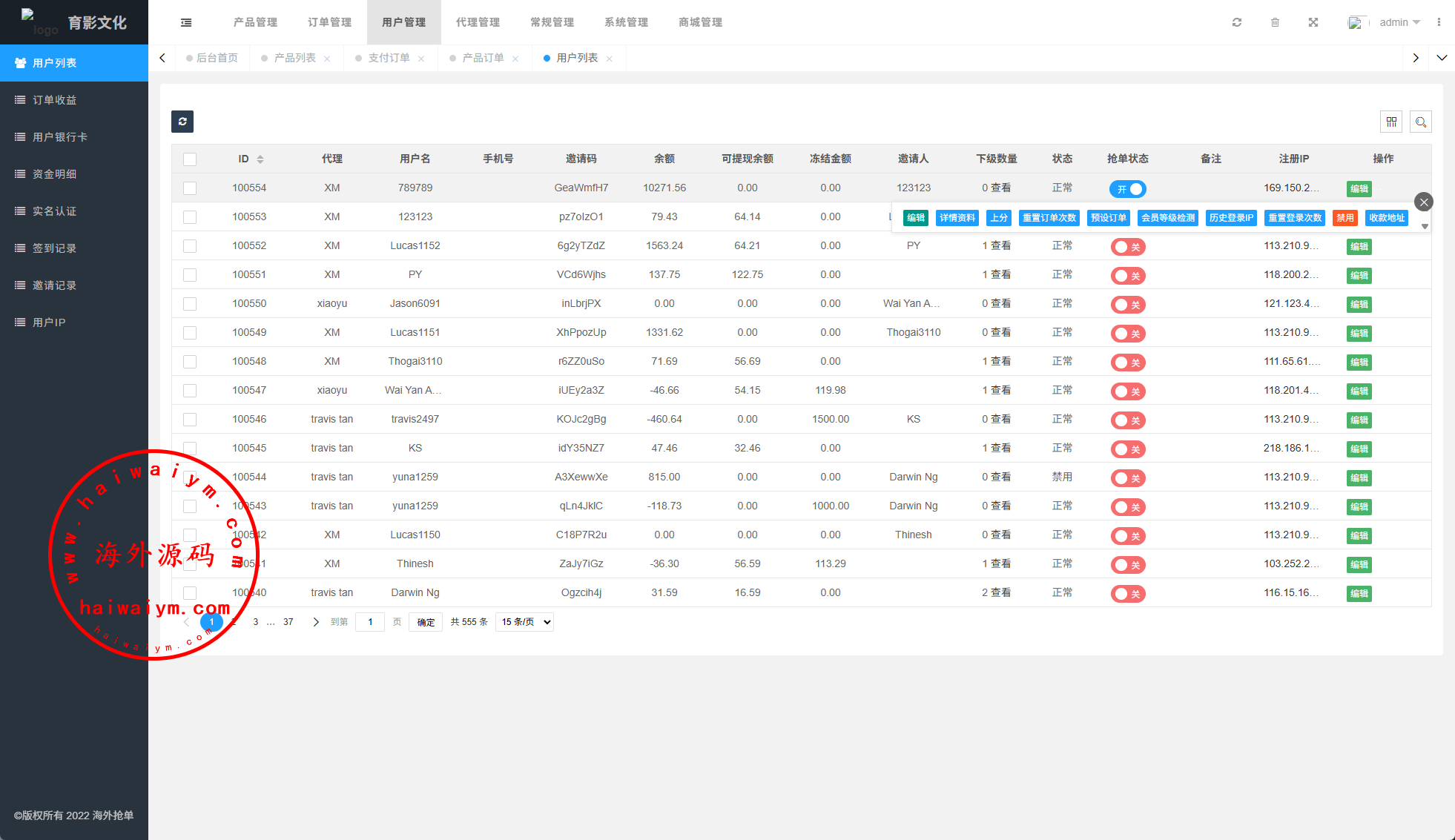 韩国抢单刷单系统/多语言刷单商城/打针/信用分/代理后台