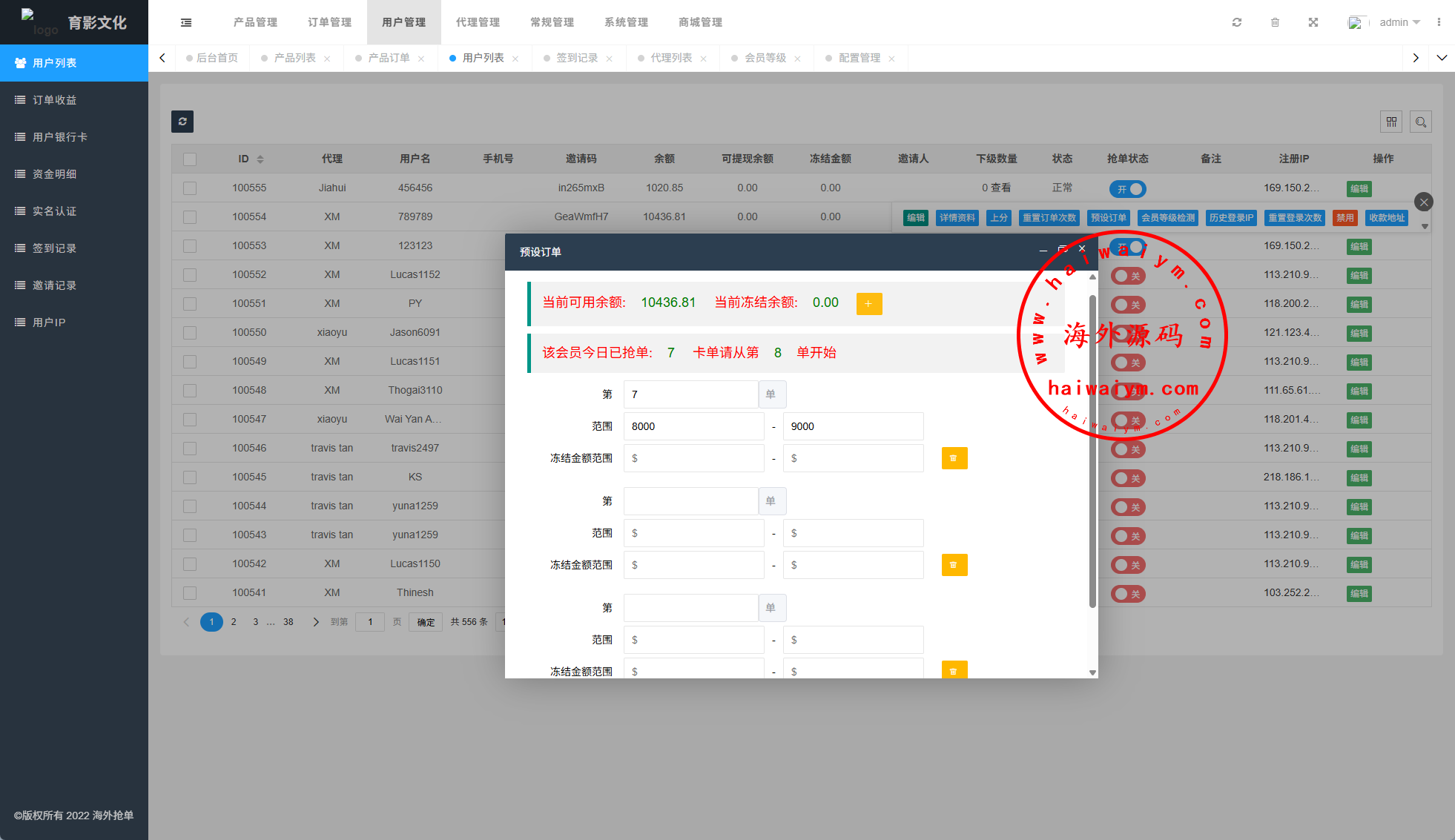 海外商城抢单刷单系统/预设订单/重置订单/签到
