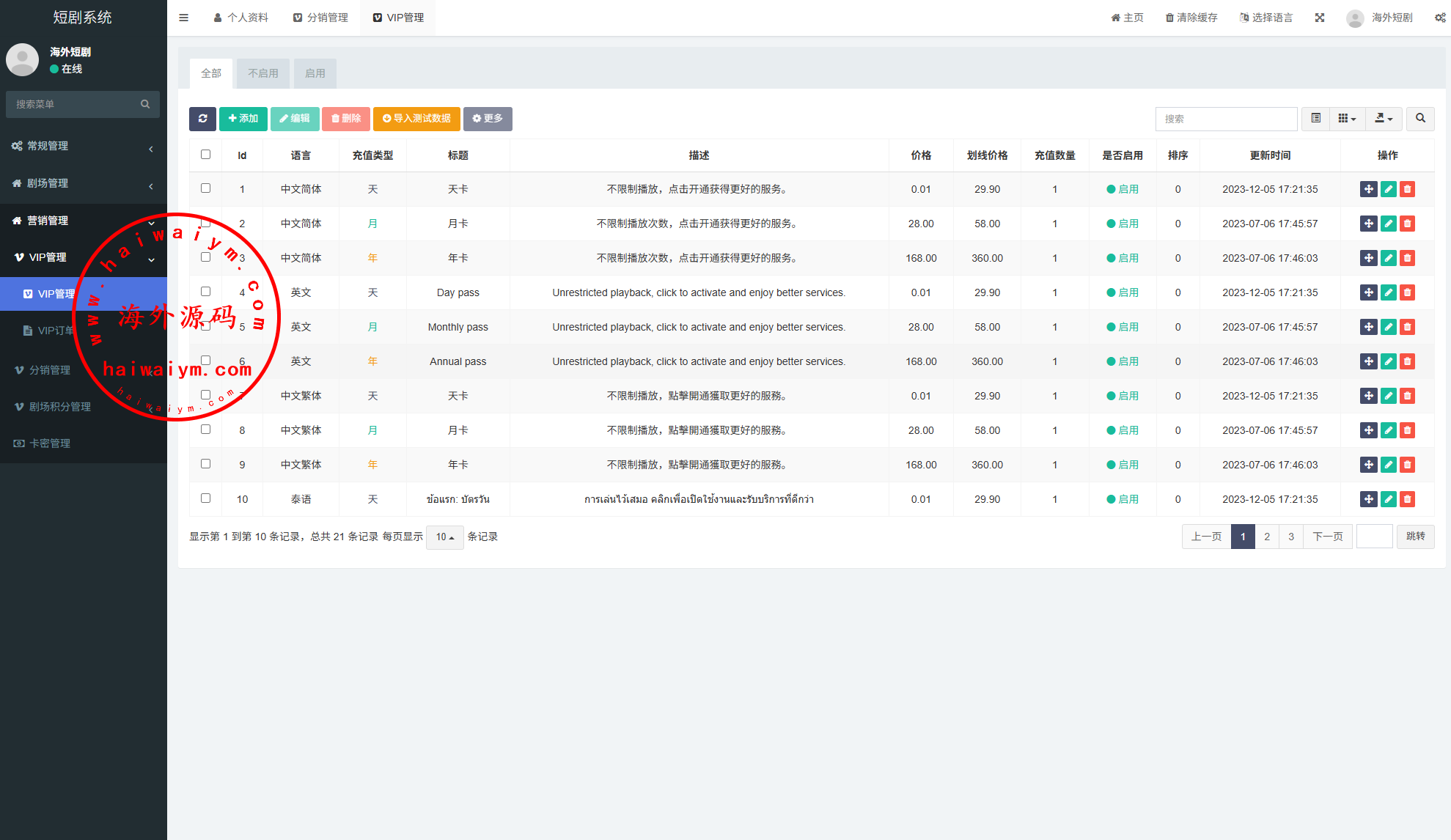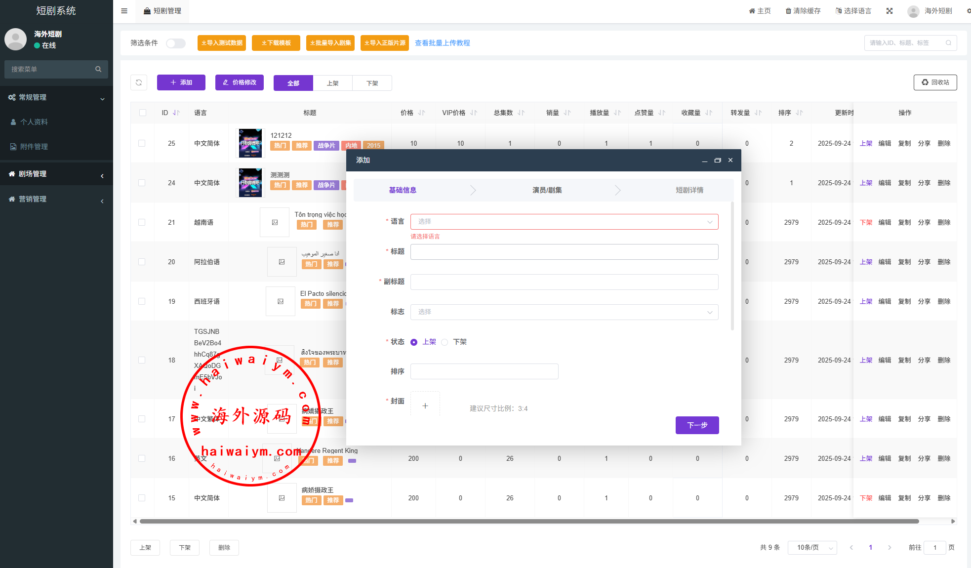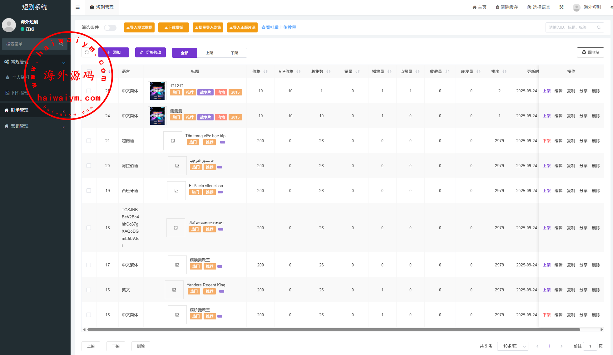 海外短剧系统/多语言短剧/收费短剧剧集/saas版源码