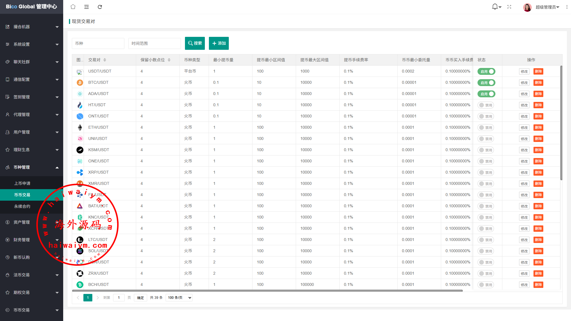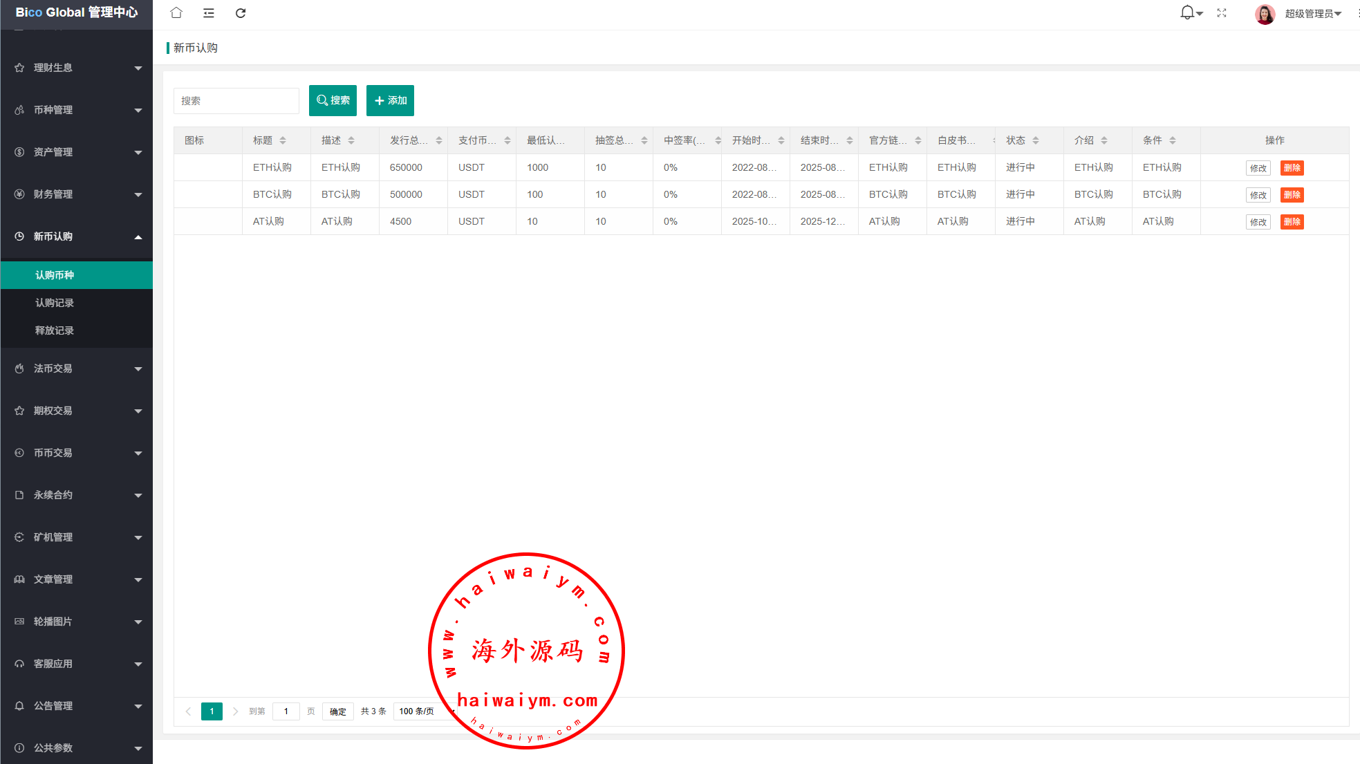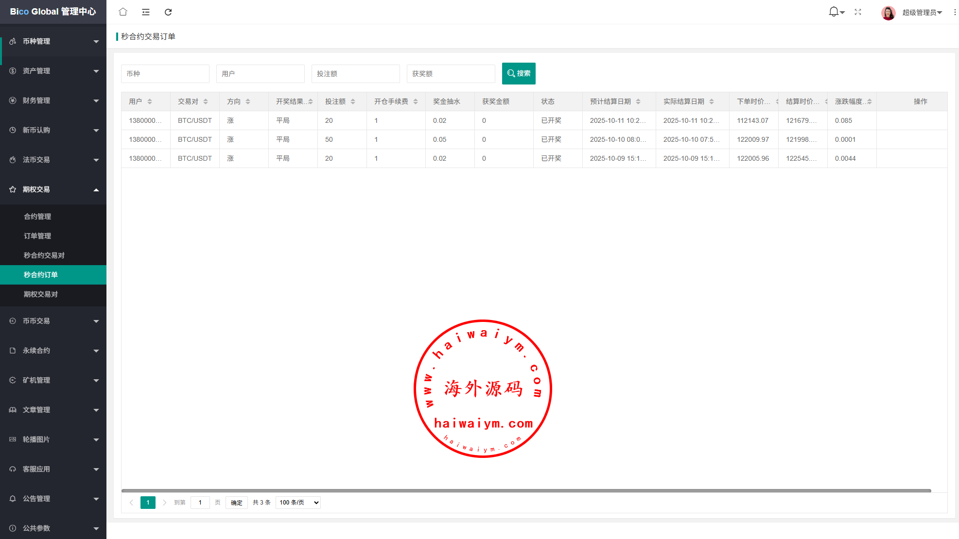 海外交易所系统/合约/期权/质押/秒合约/插针控制/申购