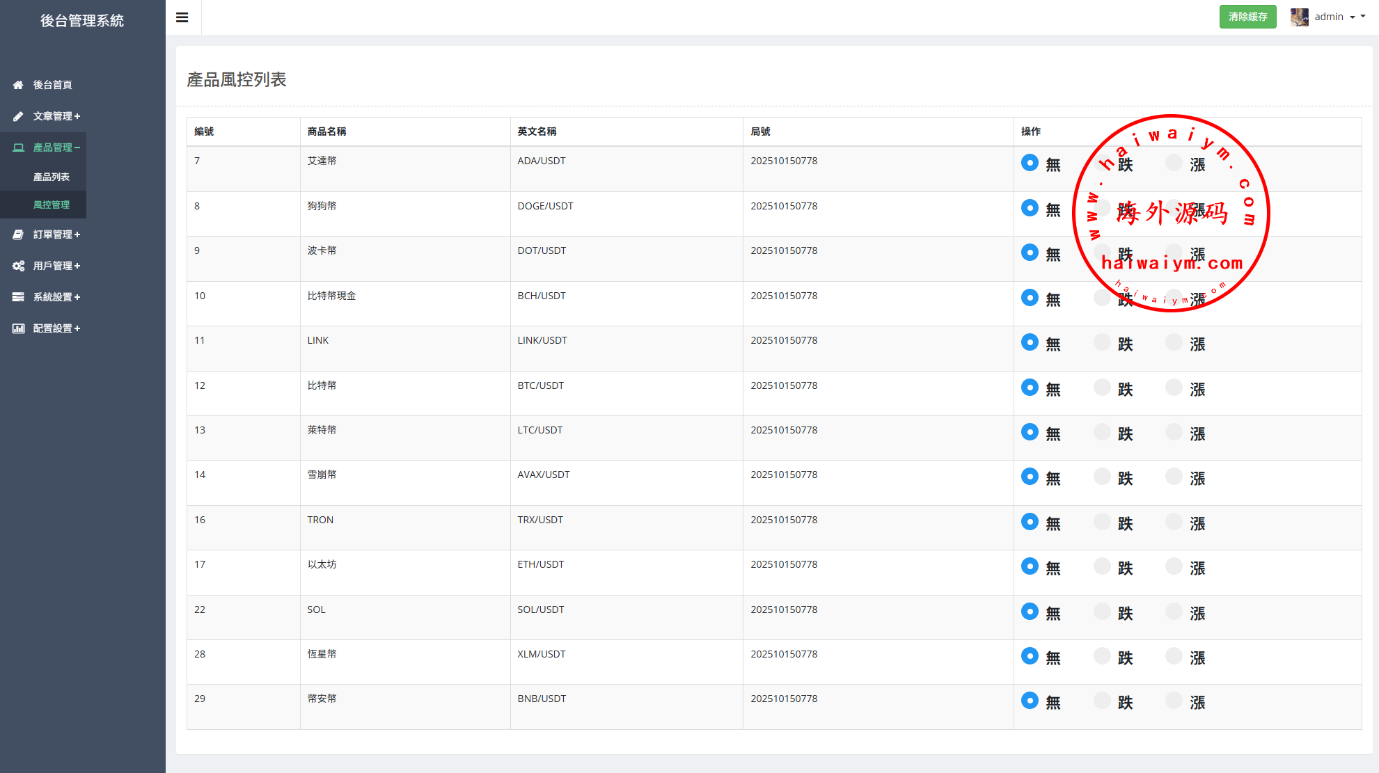 海外交易所系统/秒合约/杠杆交易/投资/K线控制
