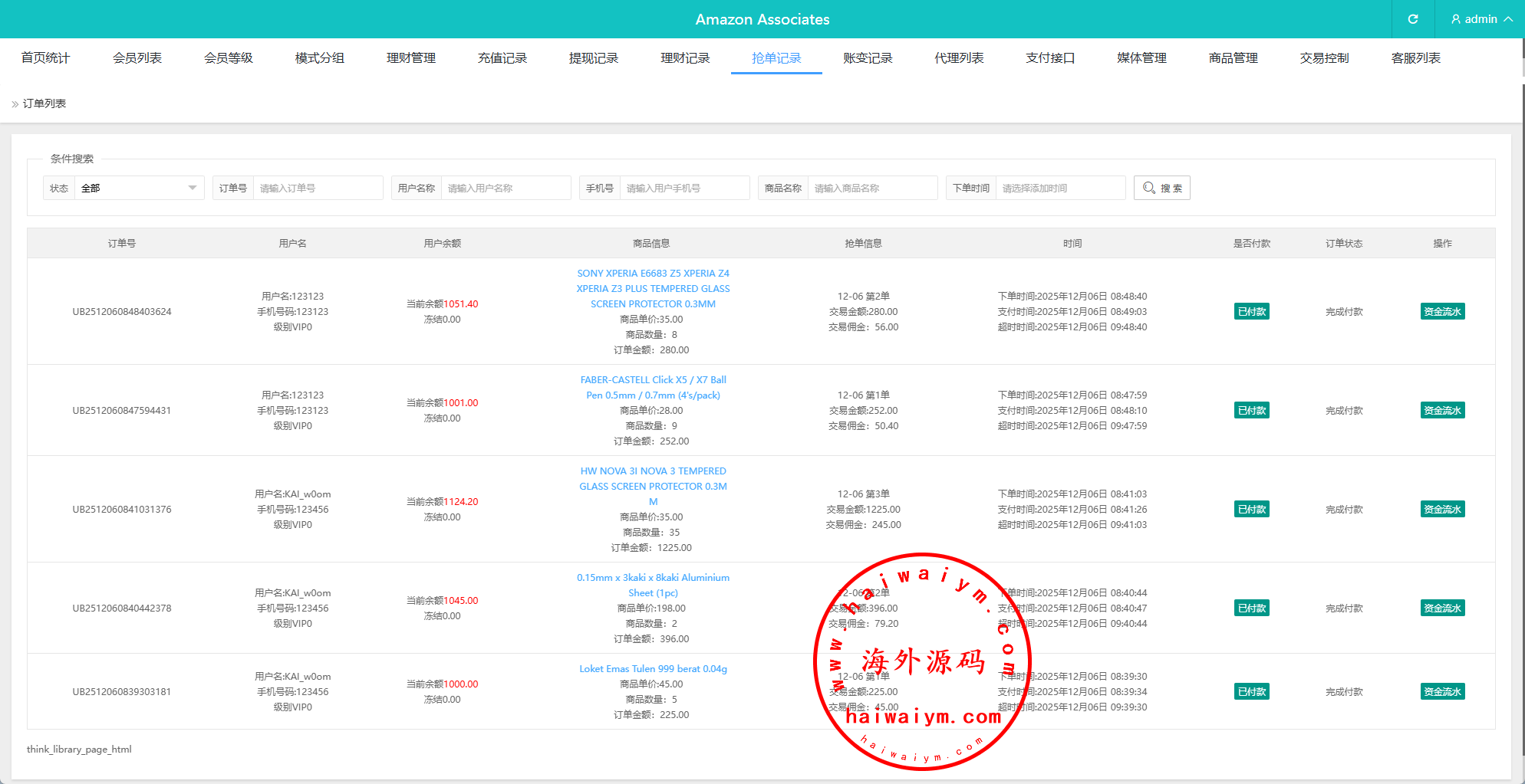 海外商城抢单刷单系统/预设订单/重置订单/签到