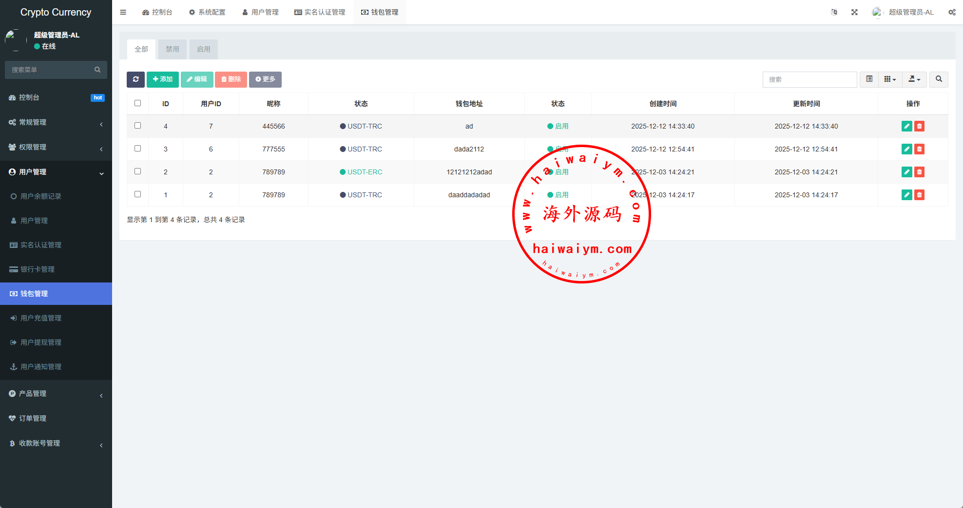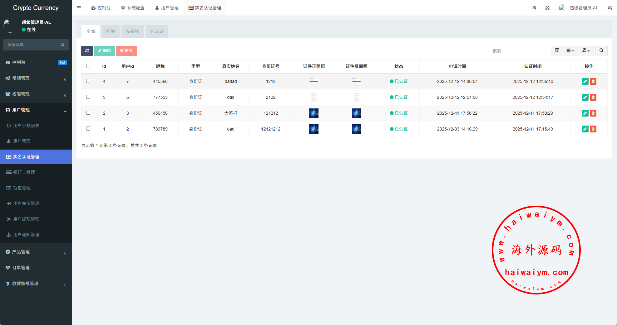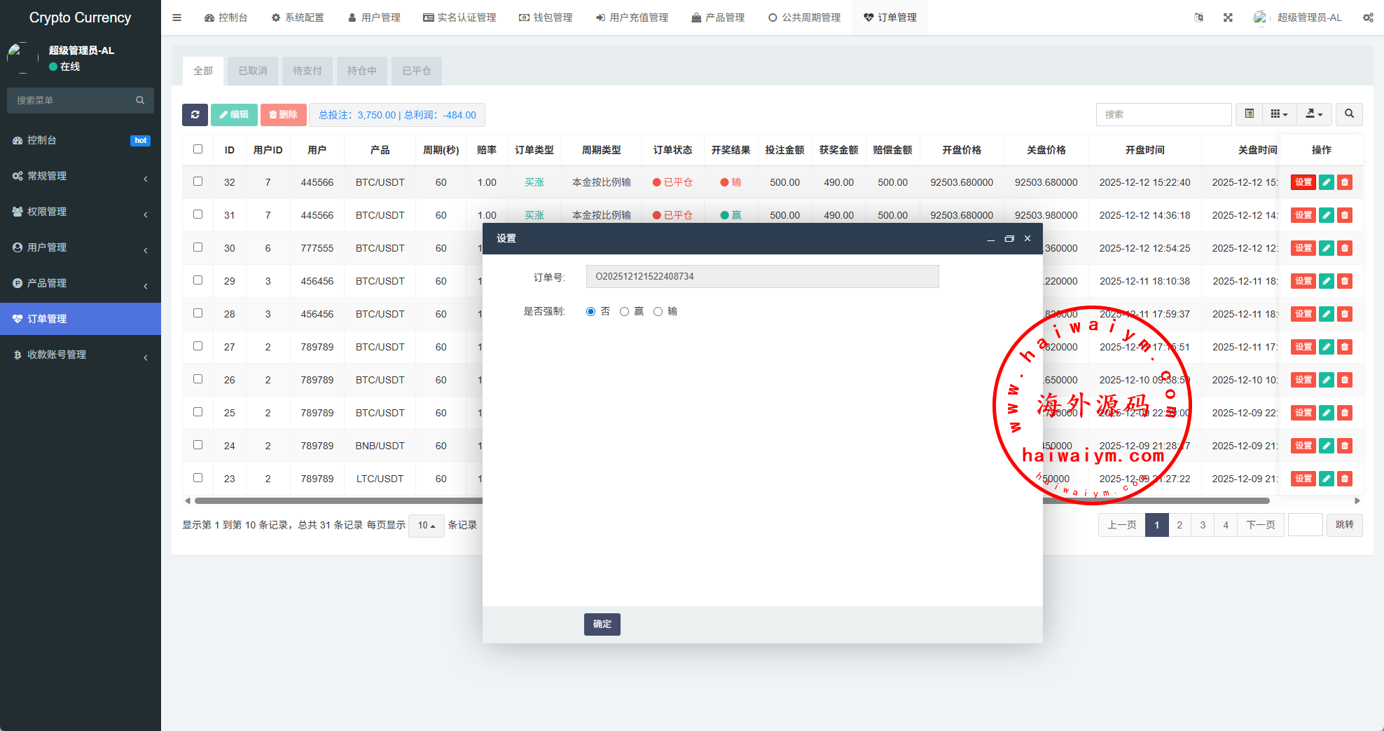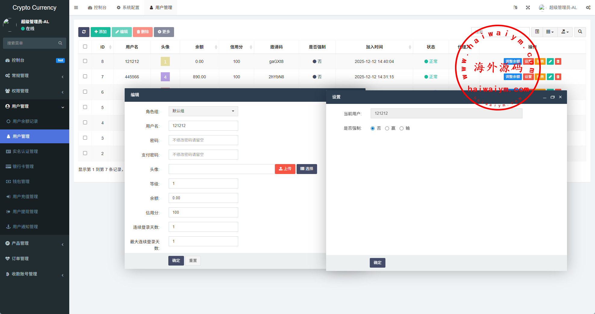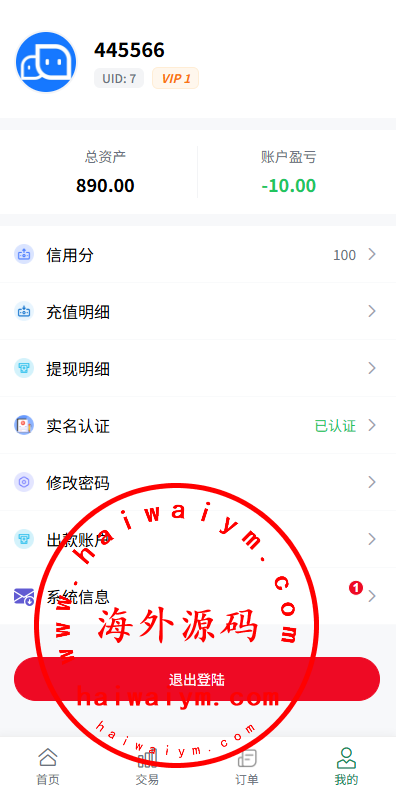系统功能:信用分,VIP等级,实名认证,银行卡usdt充值提现,用户单控,订单控制等功能