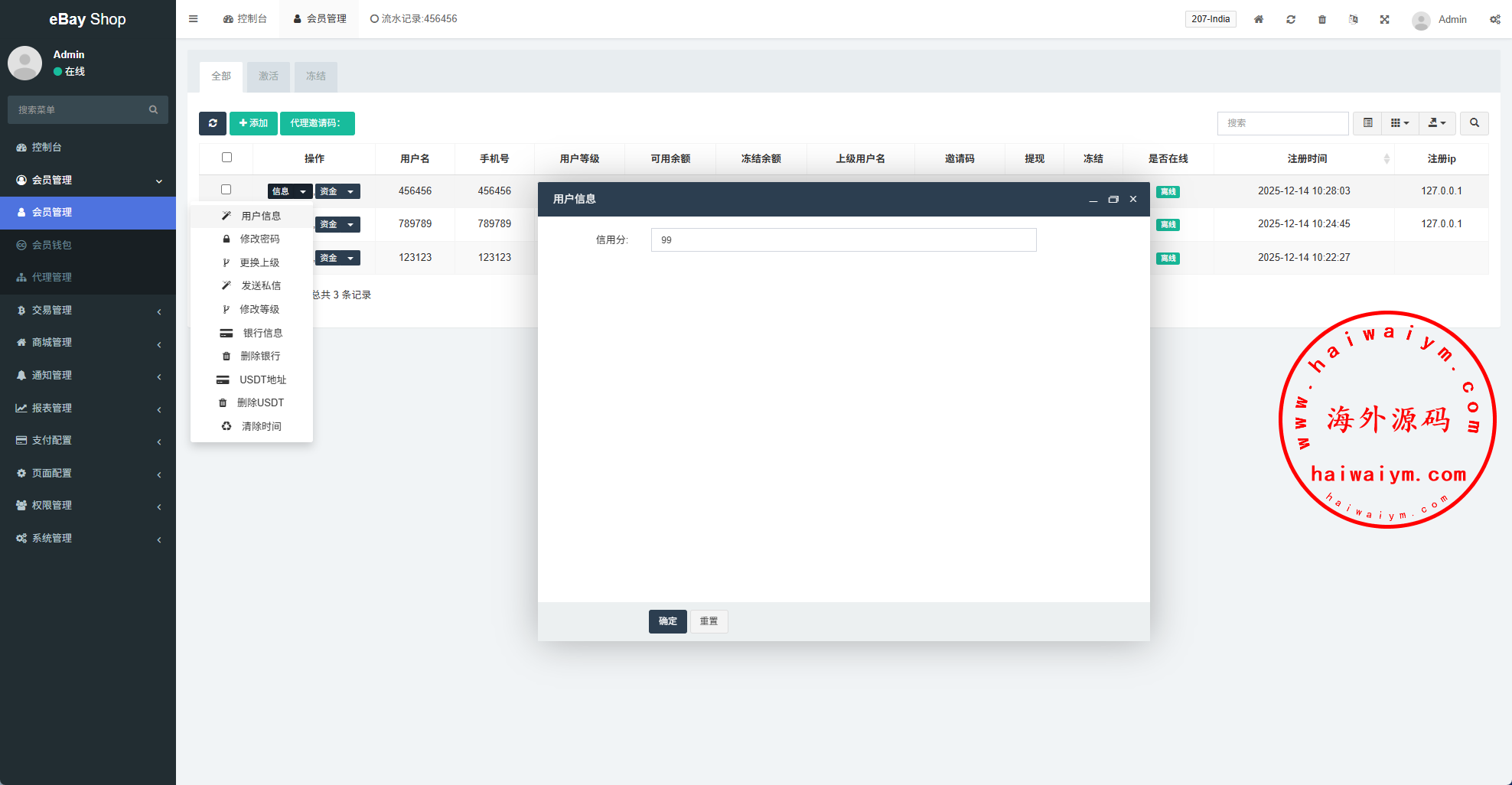 支持设置用户信用分;