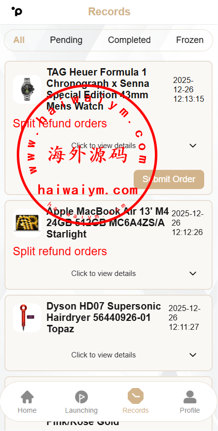 新版奢饰品刷单系统,前端uniapp 后端php全开源带教程系统功能:自定义卡单连单,信誉分,重置订单等功能