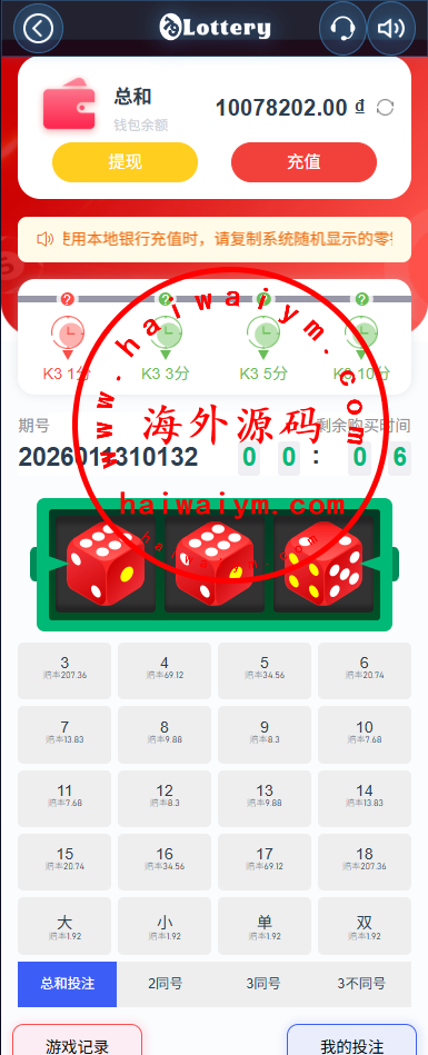 运营版快三竞猜投注系统/多语言彩票/预设系统彩