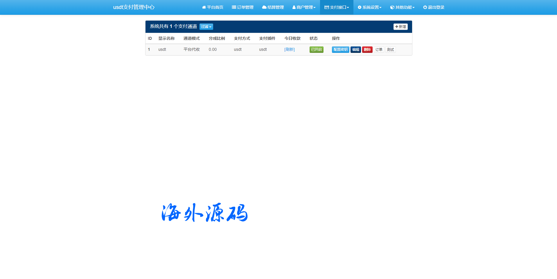 全新的USDT支付系统,源码搭建添加通道填写收款地址即可使用